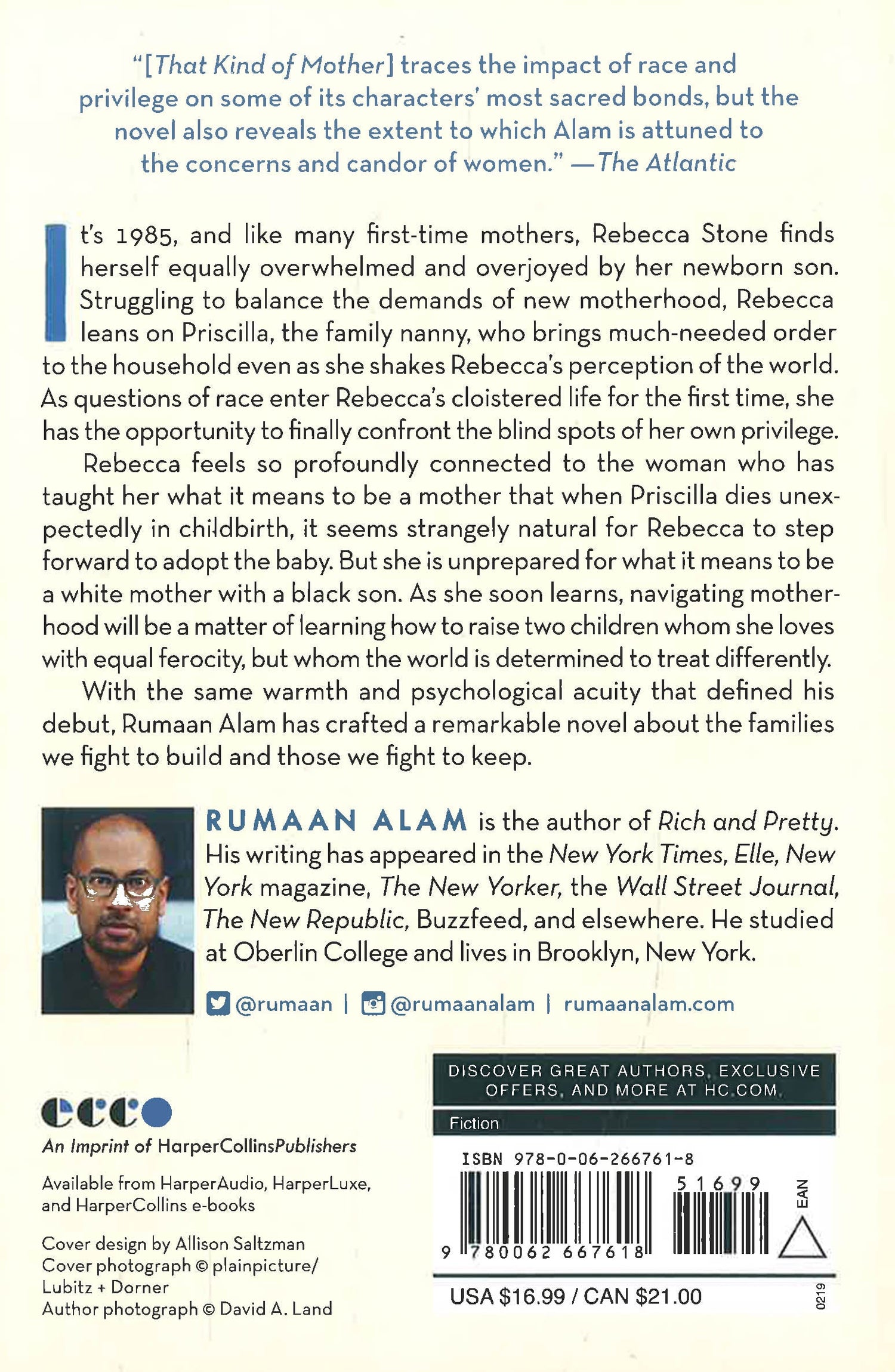 Priscilla’s presence quickly does as much to shake up Rebecca’s perception of the world as it does to stabilize her life. Rebecca is white, and Priscilla is black, and through their relationship, Rebecca finds herself confronting, for the first time, the blind spots of her own privilege. She feels profoundly connected to the woman who essentially taught her what it means to be a mother. When Priscilla dies unexpectedly in childbirth, Rebecca steps forward to adopt the baby. But she is unprepared for what it means to be a white mother with a black son. As she soon learns, navigating motherhood for her is a matter of learning how to raise two children whom she loves with equal ferocity, but whom the world is determined to treat differently.