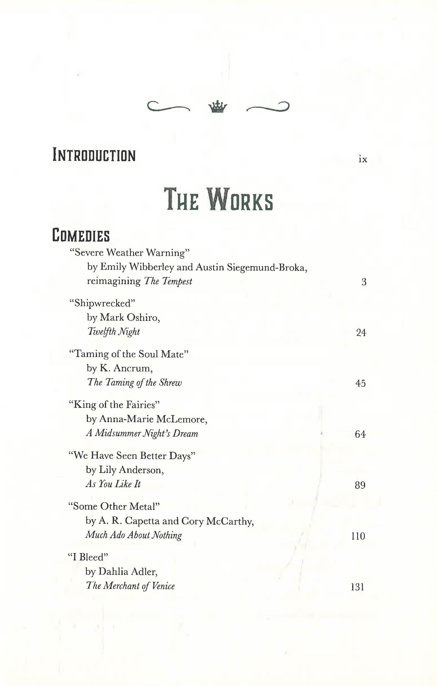 In That Way Madness Lies, fifteen acclaimed writers put their modern spin on William Shakespeare's celebrated classics! "From comedy to tragedy to sonnet, from texts to storms to prom, this collection is a knockout." -BuzzFeed.com West Side Story. 10 Things I Hate About You. Kiss Me, Kate. Contemporary audiences have always craved reimaginings of Shakespeare's most beloved works. Now, some of today's best writers for teens take on the Bard in these 15 whip-smart and original retellings! Contributors include Dahlia Adler (reimagining The Merchant of Venice), Kayla Ancrum (The Taming of the Shrew), Lily Anderson (As You Like It), Melissa Bashardoust (A Winter's Tale), Patrice Caldwell (Hamlet), A. R. Capetta and Cori McCarthy (Much Ado About Nothing), Brittany Cavallaro (Sonnet 147), Joy McCullough (King Lear), Anna-Marie McLemore (Midsummer Night's Dream), Samantha Mabry (Macbeth), Tochi Onyebuchi (Coriolanus), Mark Oshiro (Twelfth Night), Lindsay Smith (Julius Caesar), Kiersten White (Romeo and Juliet), and Emily Wibberley and Austin Siegemund-Broka (The Tempest).