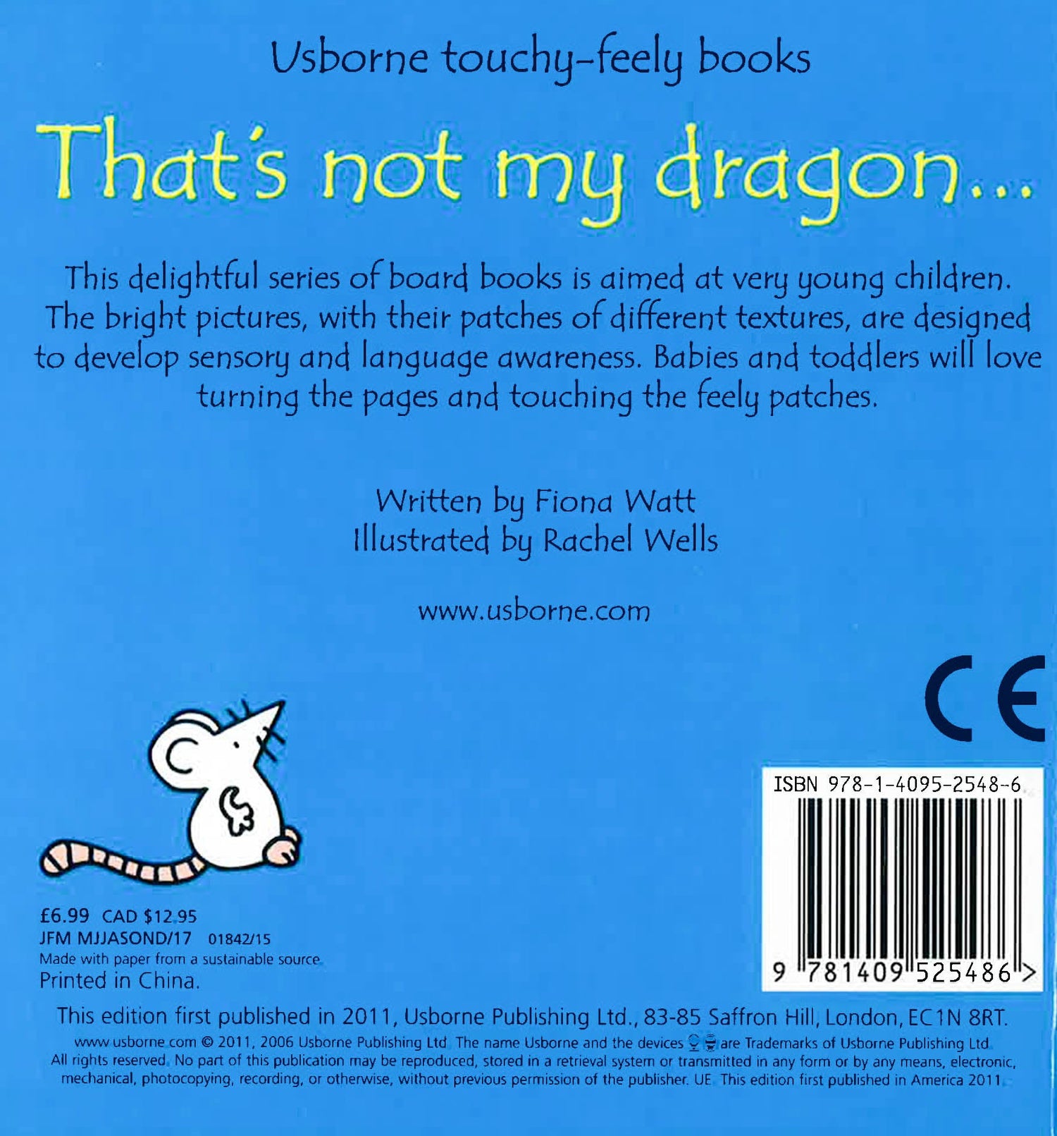 Meet five amazing dragons in this magical addition to the much-loved That's not my… series. Babies love the best-selling That’s not my… books with their bold illustrations, patches to stroke, and a mouse to spot on every page, all designed to develop sensory and language awareness.
