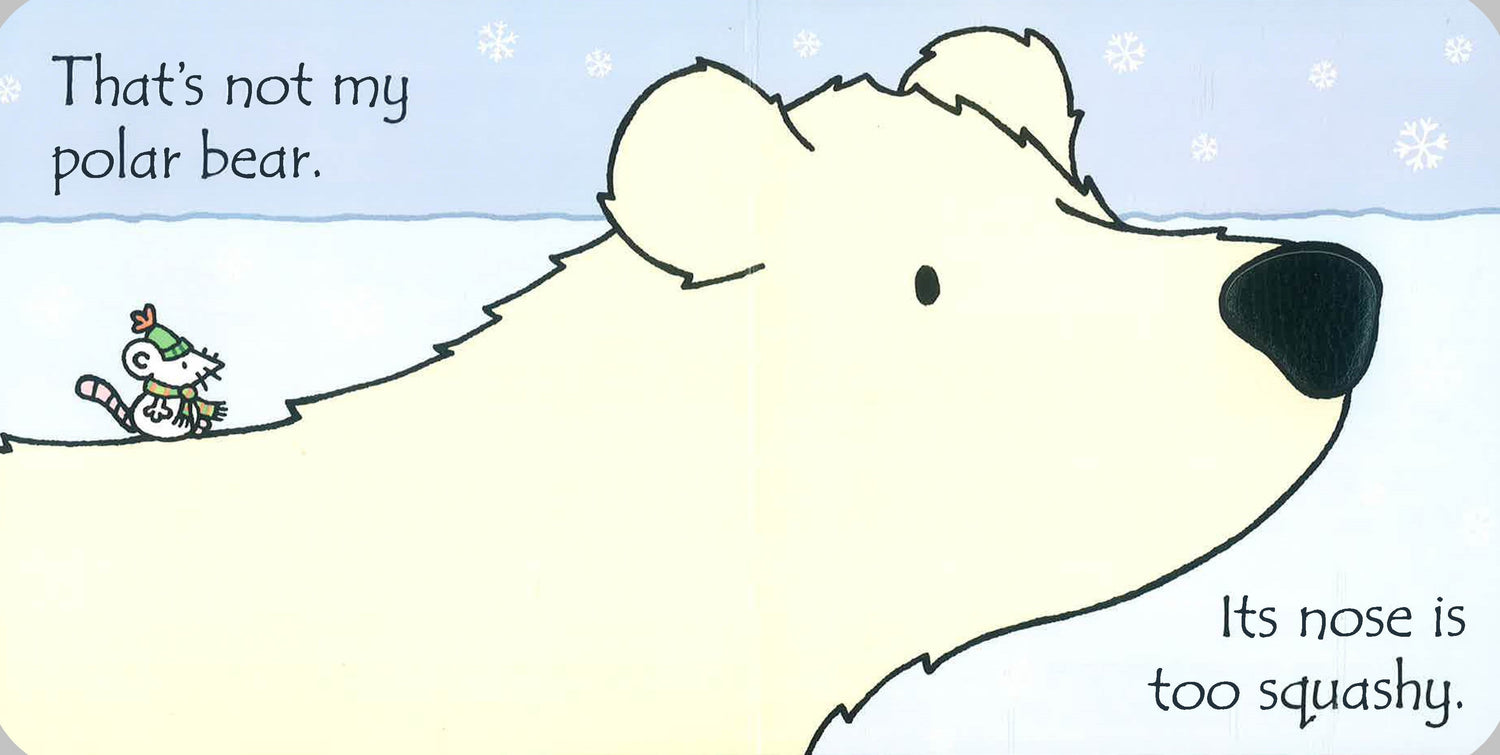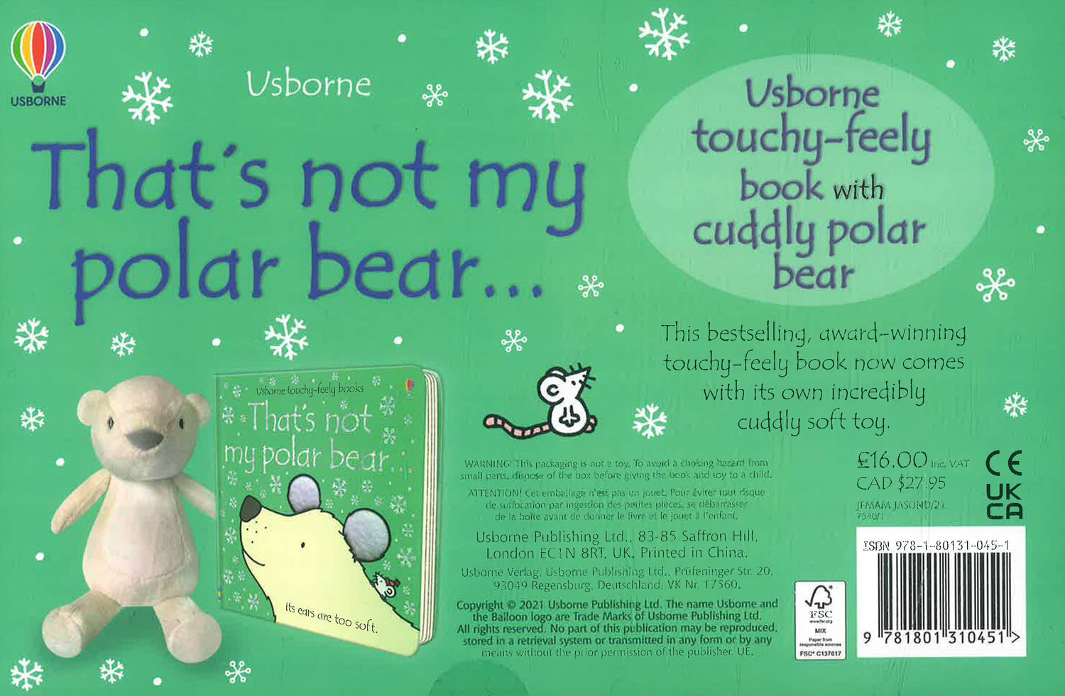 Babies and toddlers will love exploring the touchy-feely patches, hunting for the little white mouse and cuddling the incredibly soft polar bear toy.