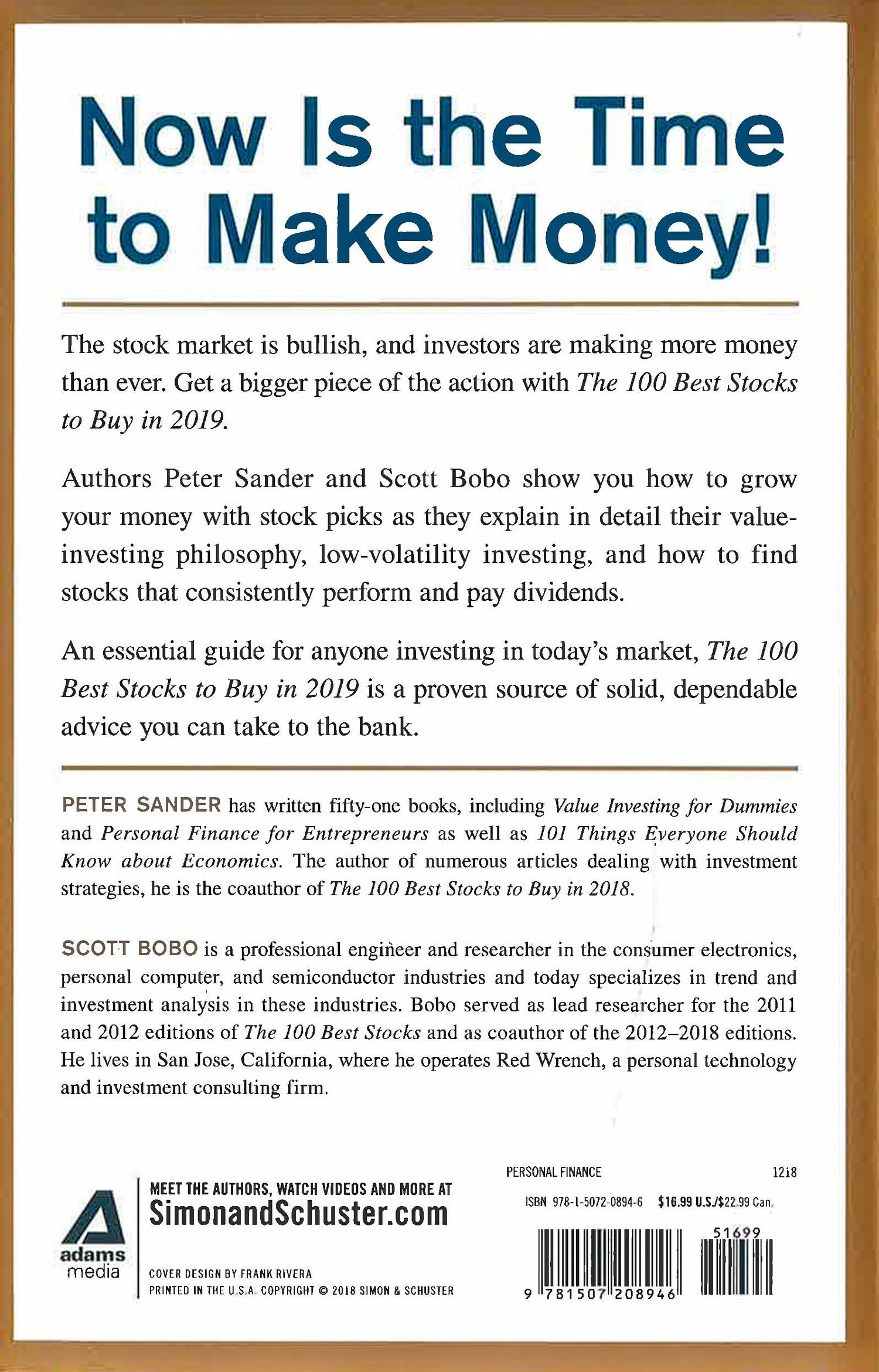 Updated for today's market, important and timely advice--based on a proven methodology--on which stocks you should invest in right now, in this edition of the 100 Best Stocks series. Even though the economy is in constant flux, there's still plenty of opportunity for smart investors to make a profit. The 100 Best Stocks to Buy in 2019 shows you how to protect your money with stock picks that have consistently beaten the S&P average. In easy-to-understand and highly practicable language, authors Peter Sander and Scott Bobo clearly explain their value-investing philosophy, as well as offer low-volatility investing tips and how to find stocks that consistently perform and pay dividends. An essential guide for anyone investing in today's stock market, The 100 Best Stocks to Buy in 2019 is a proven source of solid, dependable advice you can take to the bank.