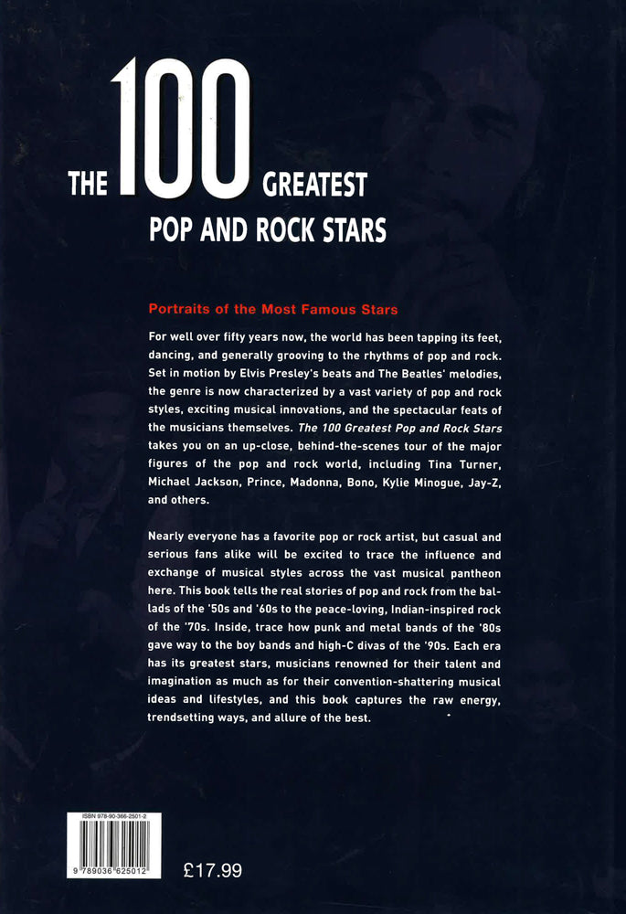 The book presents a hundred famous pop stars from the first to today's idols. Here you will find ABBA, AC / DC, Johnny Cash, David Bowie, Bob Dylan, Eminem, Dire Straits, Bob Geldof, Michael Jackson, John Lennon, Annie Lennox, Modern Talking, Kylie Minouge, the Sex Pistols, Justin Timberlake and many more . Everyone is presented with a biography and with portraits from their careers.