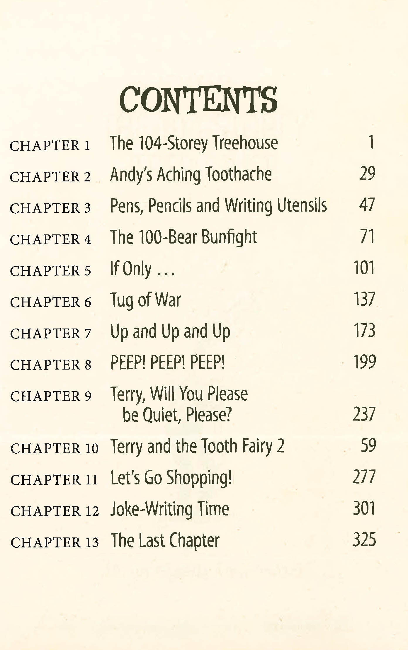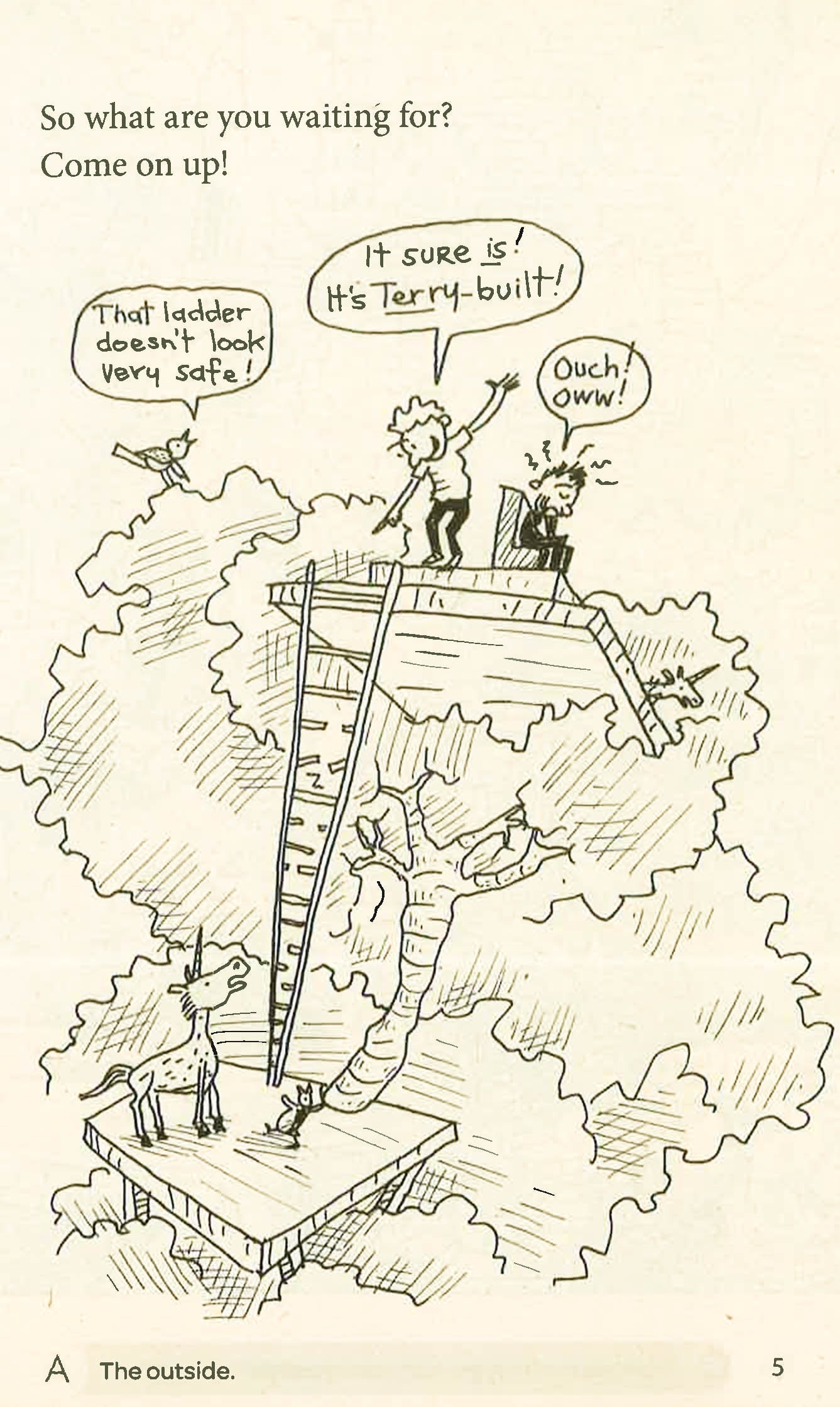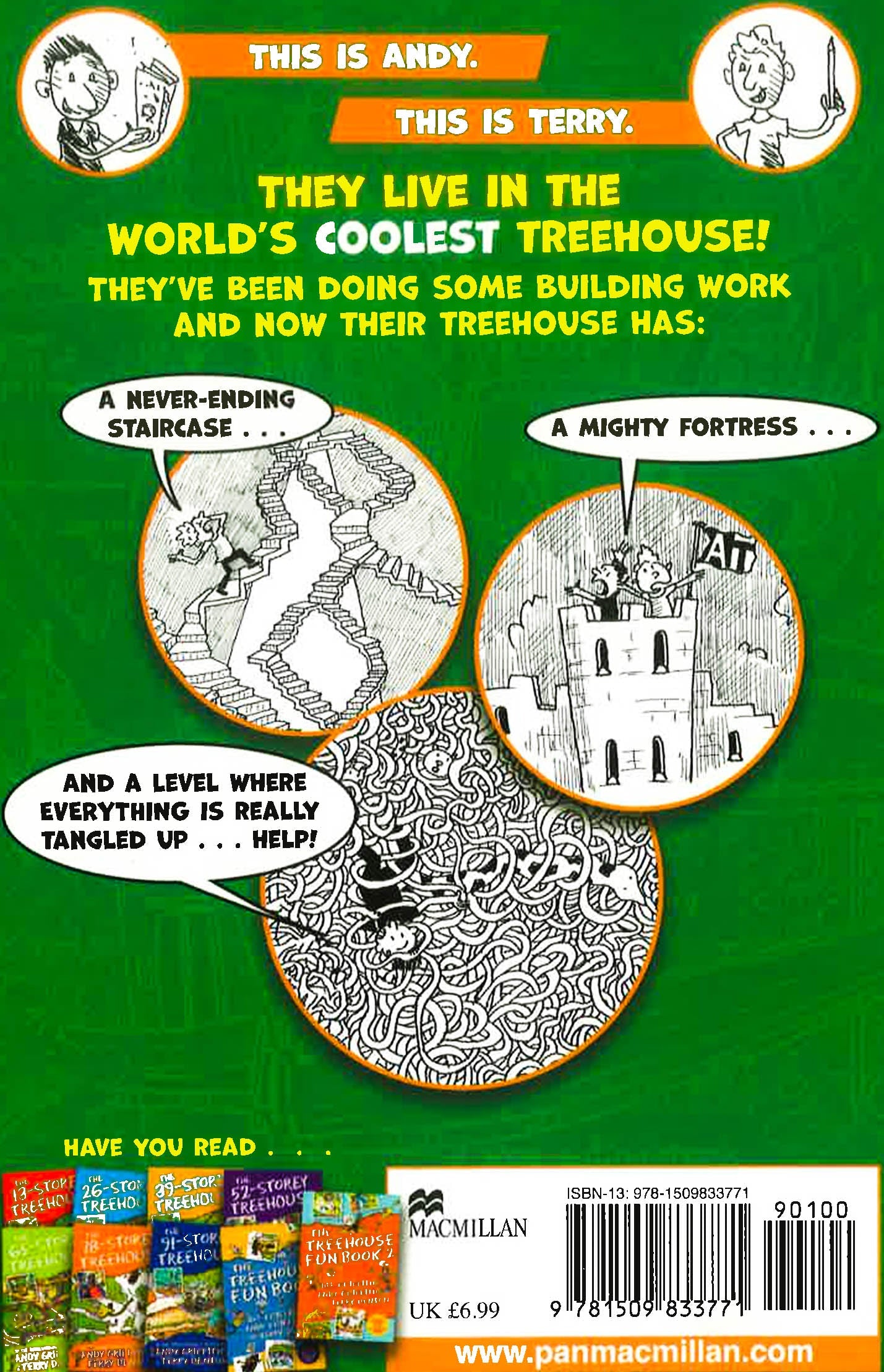The 104-Storey Treehouse is the eighth book of Andy Griffiths and Terry Denton's wacky treehouse adventures, where the laugh-out-loud story is told through a combination of text and fantastic cartoon-style illustrations. Join Andy and Terry in their now 104-storey spectacular treehouse. They've added thirteen new levels, including a never-ending staircase, a burp bank, and even a mighty fortress. But Andy and Terry are in a race against time to find a funny story for their next book - will the tooth fairy, the two-million-dollar shop or even the riddles of the deep-thoughts thinking room be able to help? Well, what are you waiting for? Come on up!