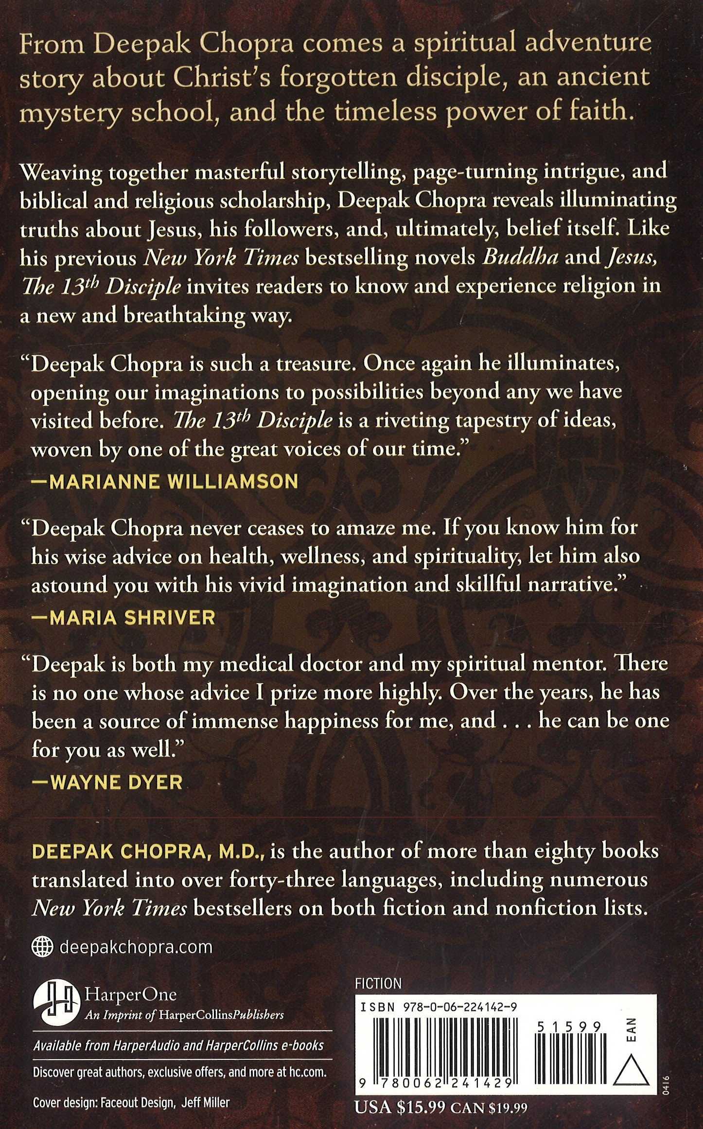 The New York Times bestselling author of Buddha and Jesus weaves together historical narrative, mystery, exciting adventure, and intrigue in this masterfully told novel that reveals surprising discoveries about the unknown last disciple of Christ, and a new understanding of who Jesus was in his final days. When a solid gold reliquary missing from a church in Belgium suddenly resurfaces in America, a young newspaperman begins to investigate the story. At first, it seems like just another case of a treasure stolen during World War II that has resurfaced. But it soon becomes apparent that much more is at stake. Hidden within the medieval reliquary is a gold box that holds a sacred relic-a single finger bone-from an anonymous saint. Why would the remains of someone unknown to the Church be considered holy? The search for answers leads to a shocking discovery-a dangerous secret known only to a small band of people. If one touches the reliquary, a sacred vision is received-a vision involving a young girl who had a chance encounter with Jesus just before he was crucified. The few people who have been blessed with these miraculous messages have banded together into a mysterious school, a closed society that preserves this venerated wisdom. But their knowledge of the young girl and Jesus is at once so fascinating yet so highly controversial that it cannot be shared with the world. This young girl, curious about the charismatic man named Jesus, embarks on a quest to find out who he really was. What she finds-the knowledge the society protects-is at times far different from the accepted gospels. Could this unknown girl be the 13th Disciple-the last and truest apostle of Christ? *This book may have remainder mark*