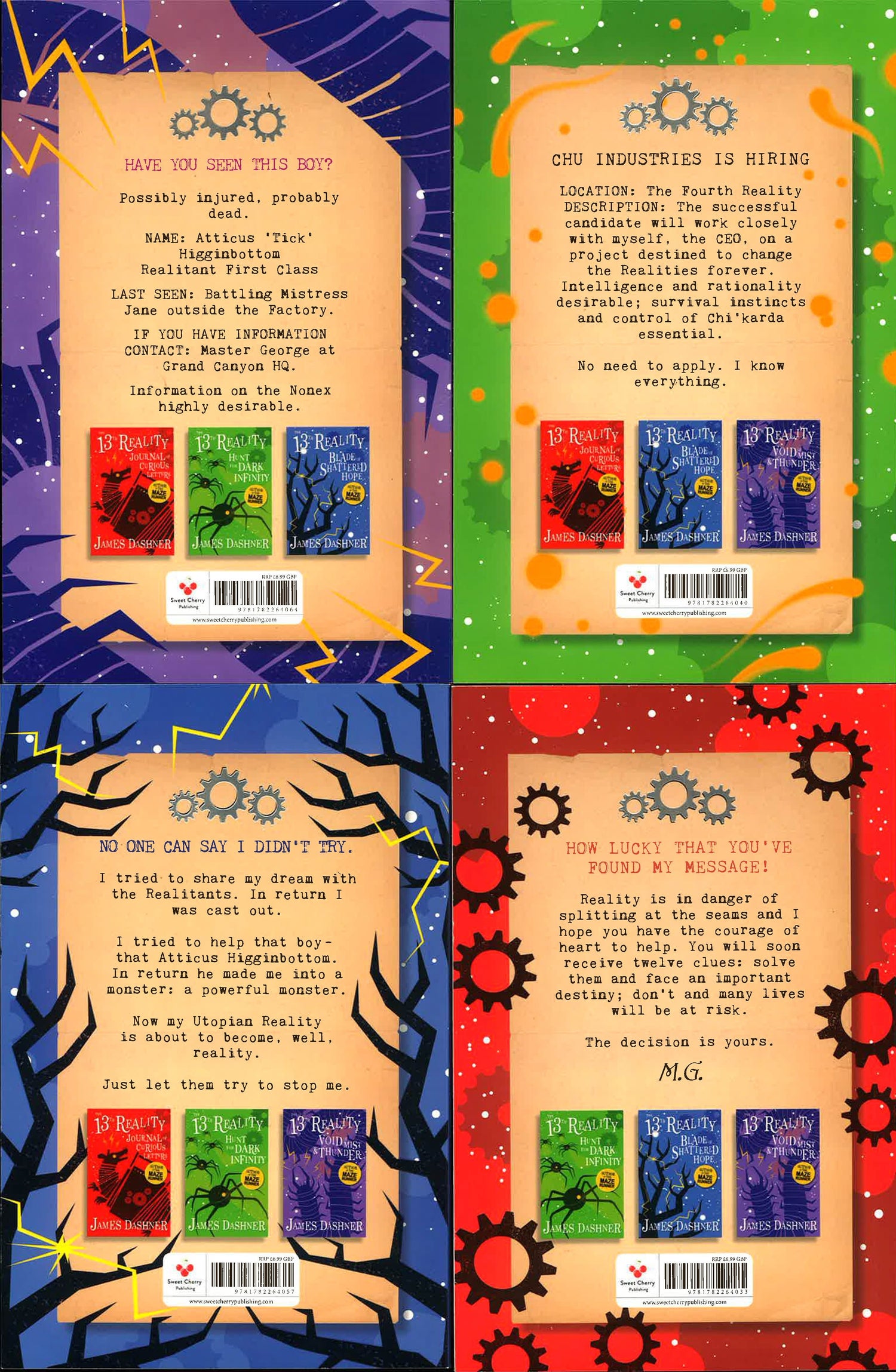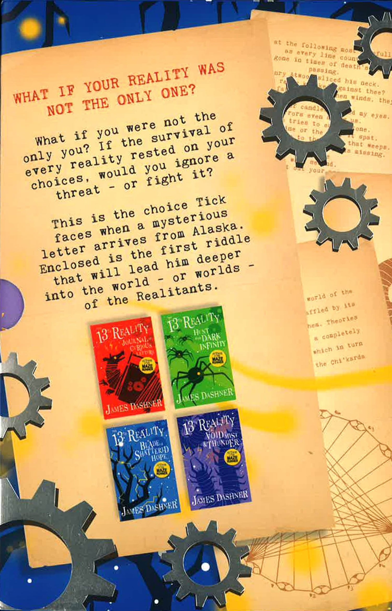 What if every time you made a choice that had a significant consequence, a new, alternate reality was created-the life that would've been? What if those new Realities were in danger? What if it were up to you to save all the realities-and in turn, the entire universe? Tick is a normal 13-year-old boy until a strange letter changes his life. The first of a series of cryptic messages, the letter explains that his world is in danger. To save his reality, Tick must solve a series of riddles. Luckily, he is not alone and soon makes two friends from other parts of the world, who have been receiving the same clues. Together they race against time to protect their world, realising along the way that theirs is not the only reality at stake. As events progress, it becomes apparent that Tick has some very unique powers that he must learn to master in order to keep protecting the 13 main realities from some terrifying dangers. As the characters realise that all realities are threatening to split at the seams, it seems that Tick is the key to restoring order and saving everyone's lives. From the author of The Maze Runner, James Dashners' The 13th Reality series is an exciting adventure that crosses the boundaries of realities. Young readers will find this an enticing introduction to the fantasy genre.