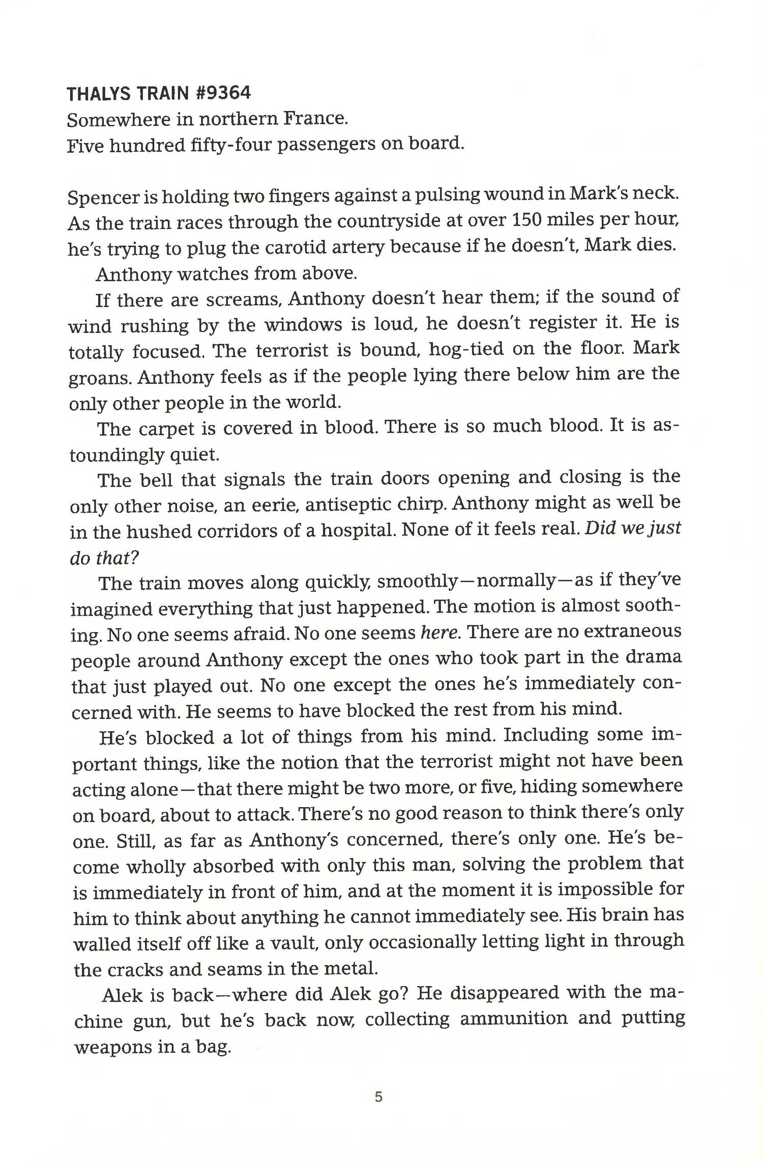 An ISIS terrorist planned to kill more than 500 people. He would have succeeded except for three American friends who refused to give in to fear.On August 21, 2015, Ayoub El-Khazzani boarded train #9364 in Brussels, bound for Paris. There could be no doubt about his mission: he had an AK-47, a pistol, a box cutter, and enough ammunition to obliterate every passenger on board. Slipping into the bathroom in secret, he armed his weapons. Another major ISIS attack was about to begin.Khazzani wasn't expecting Anthony Sadler, Alek Skarlatos, and Spencer Stone. Stone was a martial arts enthusiast and airman first class in the US Air Force, Skarlatos was a member of the Oregon National Guard, and all three were fearless. But their decision,to charge the gunman, then overpower him even as he turned first his gun, then his knife, on Stone,depended on a lifetime of loyalty, support, and faith.Their friendship was forged as they came of age together in California: going to church, playing paintball, teaching each other to swear, and sticking together when they got in trouble at school. Years later, that friendship would give all of them the courage to stand in the path of one of the world's deadliest terrorist organizations. The 15:17 to Paris is an amazing true story of friendship and bravery, of near tragedy averted by three young men who found the heroic unity and strength inside themselves at the moment when they, and 500 other innocent travellers, needed it most.