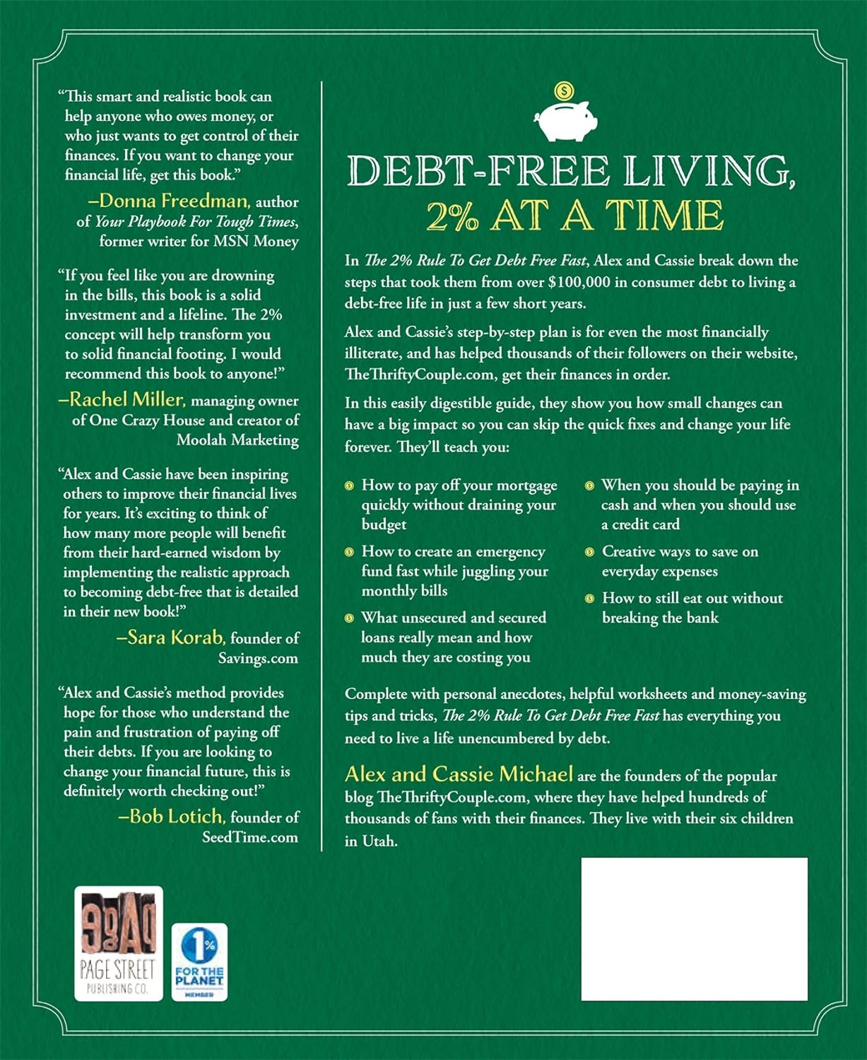According to Debt.org, the average American has over $15,000 in credit card debt alone. With such staggering debt, paying off loans can seem like a dream that will never be realized. Alex and Cassie, owners of the blog Thrifty Couple, were once $100,000 in debt, but were able to pay off over $85,000 in three and a half years just by adopting their life-changing 2% plan. The 2% Rule to Get Debt Free Fast implements a plan that involves the incremental increase in income and a decrease in budget each month, with details about finding your own "why" for getting out of debt, how to overcome mistakes and how to ultimately change your lifestyle for good. Alex and Cassie's blog, The Thrifty Couple, has over 366k Facebook followers. While other plans can help you conquer debt in the short-term, the 2% rule will change your lifestyle so that you never have to struggle with debt again.