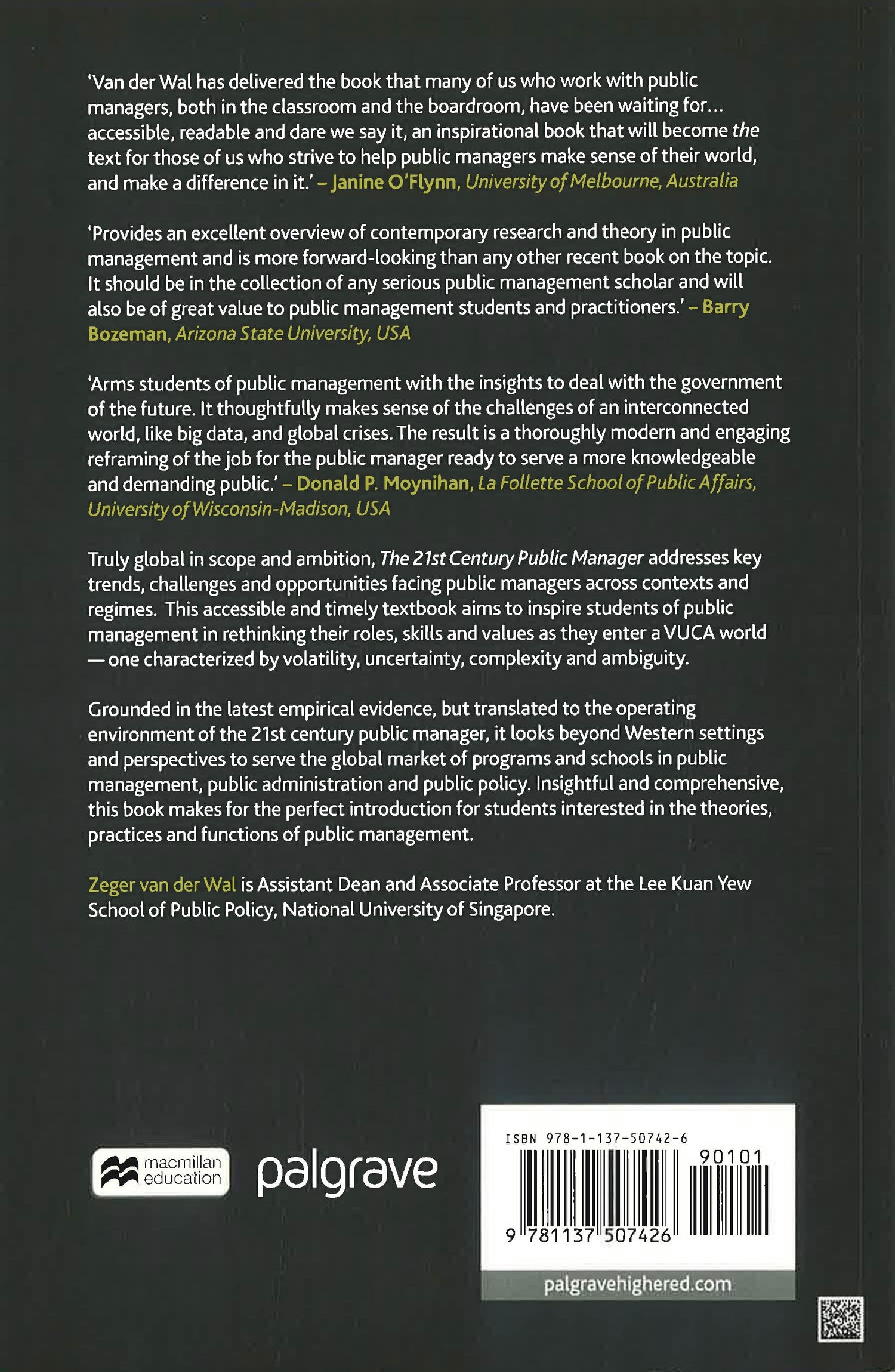 Truly global in scope and ambition, the 21st Century Public Manager addresses key trends, challenges, and opportunities facing public managers across contexts and regimes. This accessible textbook aims to inspire public managers in rethinking their roles, skills, and values as they enter a VUCA world―one characterized by volatility, uncertainty, complexity, and ambiguity. It is written for aspiring and current public managers in graduate schools and executive education programs.