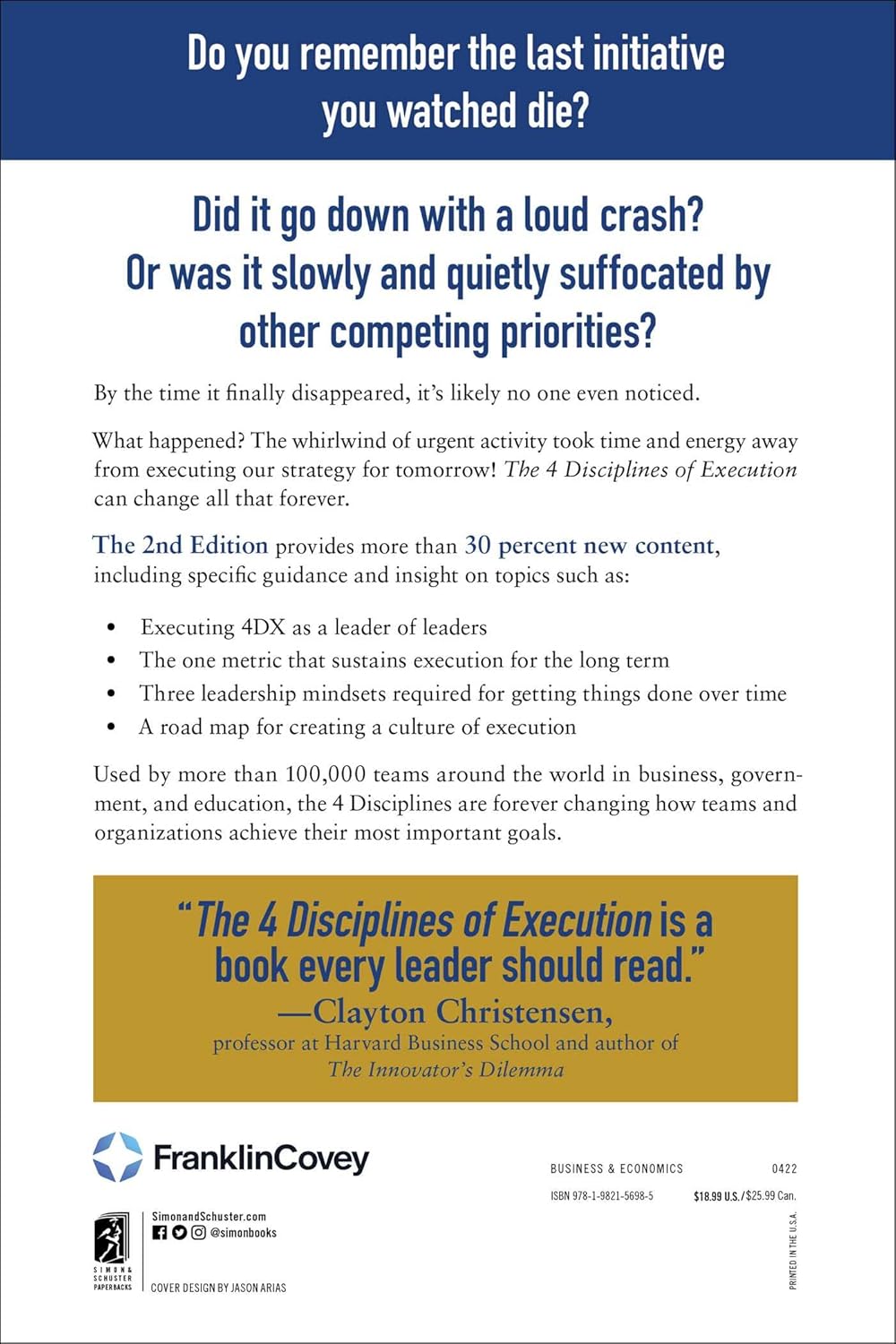For fans of Good to Great and The First 90 Days, The Four Disciplines of Execution is the book “every leader should read” (Clayton Christensen, Professor, Harvard Business School, and author of The Innovator’s Dilemma) for creating lasting organizational change. A #1 Wall Street Journal bestseller with more than 500,000 copies sold, The Four Disciplines of Execution will radically change your business.