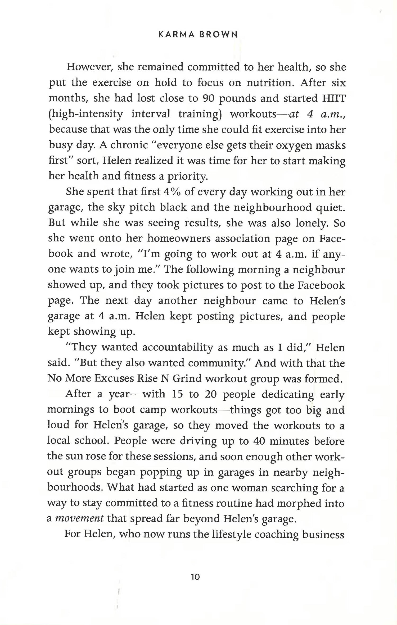 An award-winning journalist, avid reader and new mom, Karma Brown dreamed of writing her first novel. But between diapers and tight deadlines, how could she? Like so many of us, she felt stretched taut and hyper-scheduled, her time a commodity over which she had lost control. For Brown, the answer to this problem was to rise earlier every day and use that time to write. Although she experienced missteps along the way, after committing to her alarm clock and an online community of early risers, she completed a debut novel that became a national bestseller.