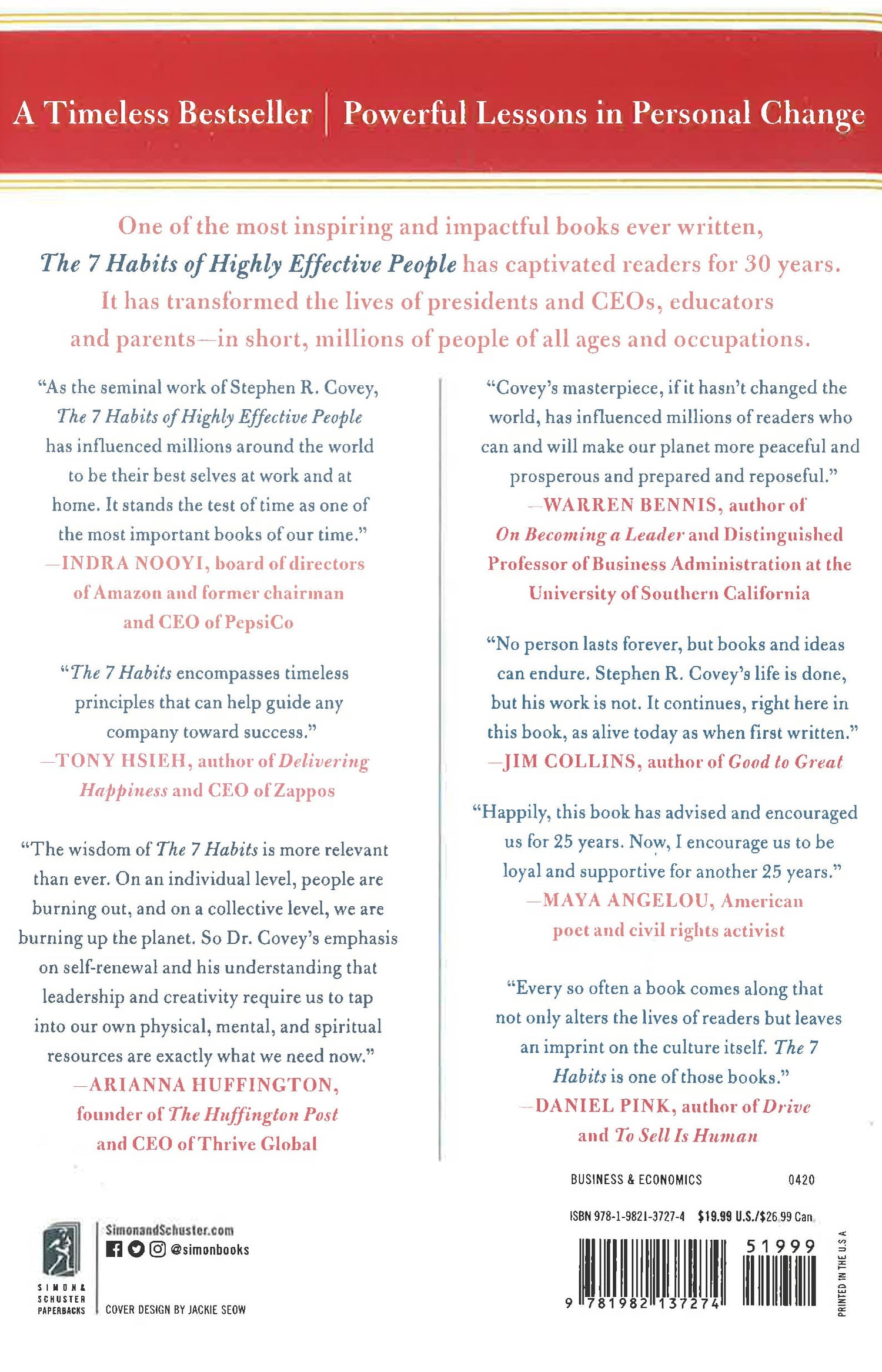One of the most inspiring and impactful books ever written, The 7 Habits of Highly Effective People has captivated readers for nearly three decades. It has transformed the lives of presidents and CEOs, educators and parents—millions of people of all ages and occupations. Now, this 30th anniversary edition of the timeless classic commemorates the wisdom of the 7 Habits with modern additions from Sean Covey.
