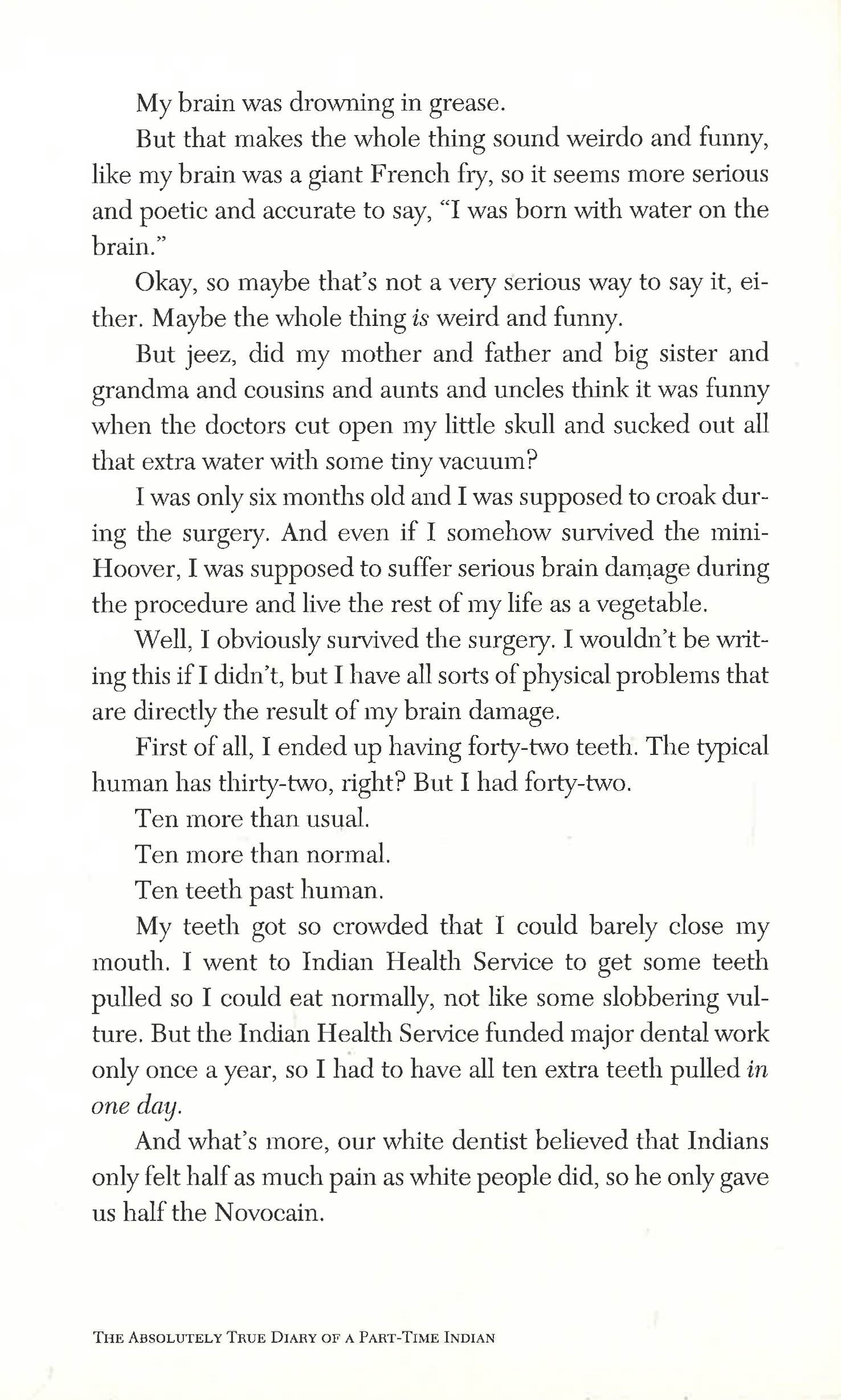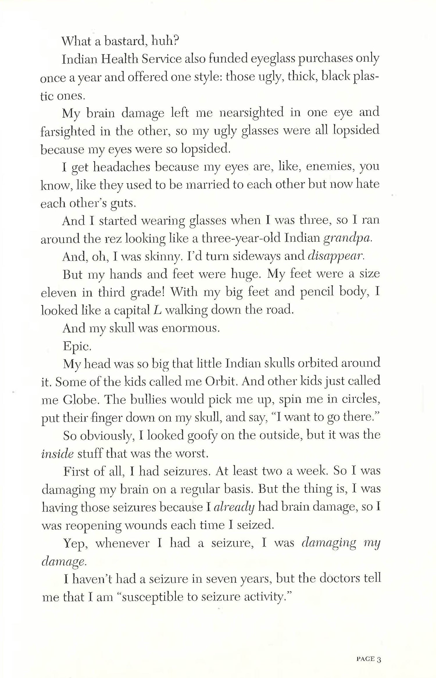 The 10th anniversary edition of Sherman Alexie's National Book Award-winning and #1 New York Times bestselling novel--bonus content included! Sherman Alexie, in his first book for young adults, tells the story of Junior, a budding cartoonist growing up on the Spokane Indian Reservation. Determined to take his future into his own hands, Junior leaves his troubled school on the reservation to attend an all-white farm town high school where the only other Indian is the school mascot. Heartbreaking, funny, beautifully written, semi-autobiographical, and coupled with poignant drawings that reflect the character's art, The Absolutely True Diary of a Part-Time Indian will continue to make a lasting impression for many years to come. Bonus content to include an introduction from National Book Award winner and New York Times bestselling author Jacqueline Woodson, a new author's note, an excerpt of a sequel from the character Rowdy's point of view, and more!