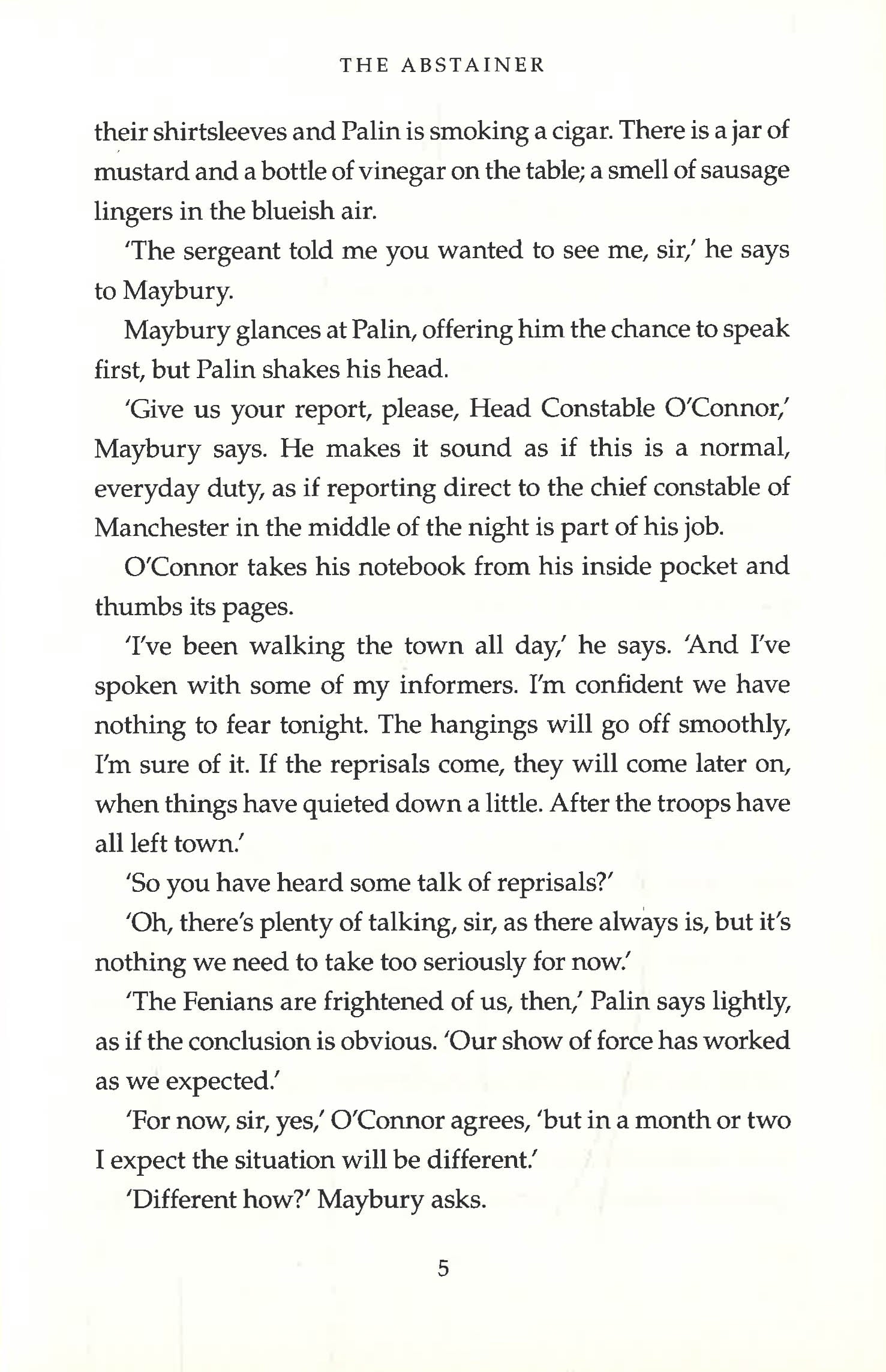 James O'Connor has fled grief and drink in Dublin for a sober start in Manchester as Head Constable. His mission is to discover and thwart the Fenians’ plans. When his long-lost nephew arrives on his doorstep, he never could have foreseen how this would imperil his fragile new life – or how his and Doyle's fates would come to be intertwined.