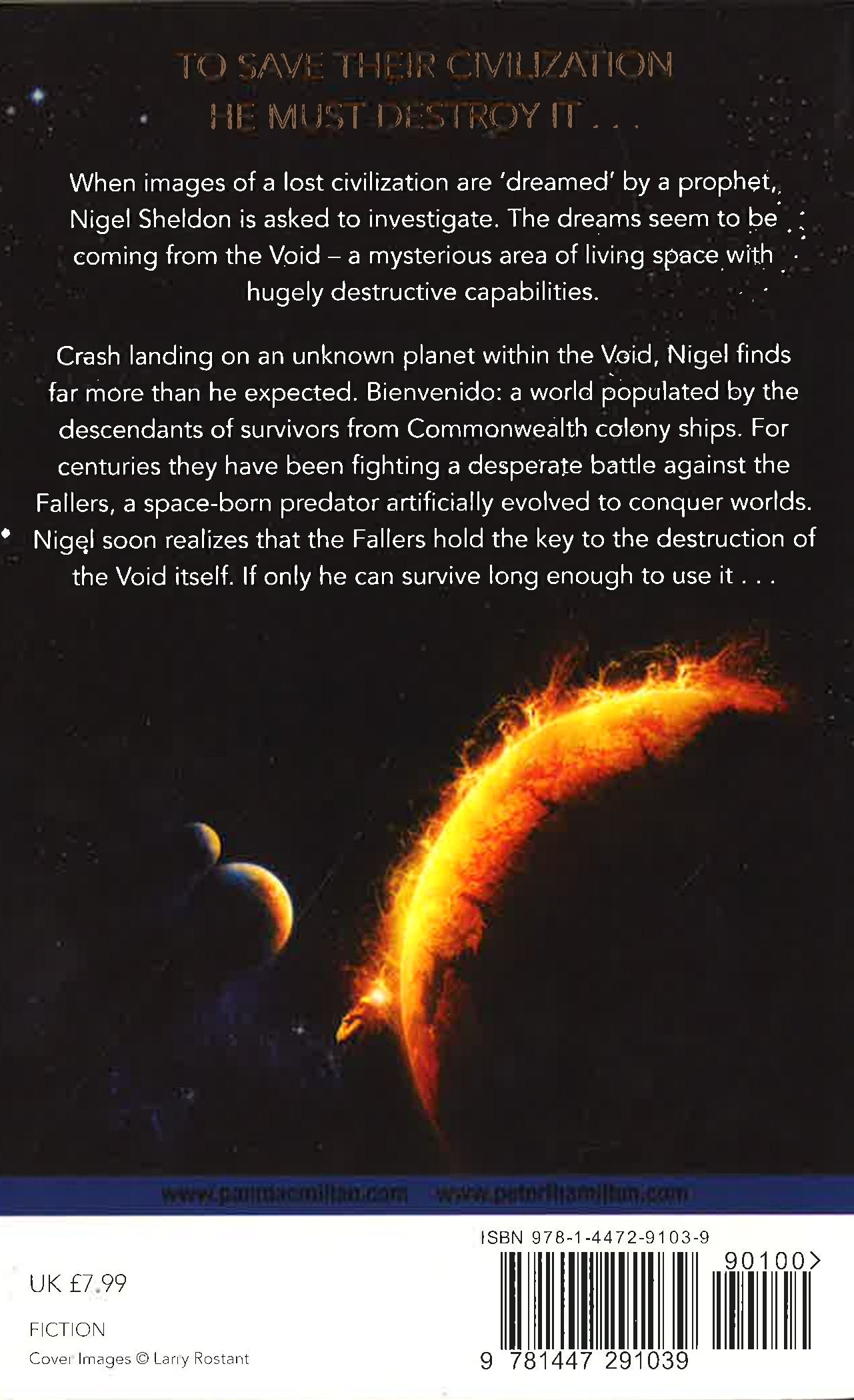 Set in the same universe as his popular Commentwealth Saga and Void Trilogy, Peter F. Hamilton's The Abyss Beyond Dreams is the gripping first voume of the Chronicle of the Fallers. To save their civilization he must destroy it...When images of a lost civilization are 'dreamed' by a self-proclaimed prophet of the age, Nigel Sheldon, inventor of wormhole technology and creator of the Commonwealth society, is asked to investigate. Especially as the dreams seem to be coming from the Void - a mysterious area of living space monitored and controlled because of its hugely destructive capabilities. With it being the greatest threat to the known universe, Nigel is committed to finding out what really lies within the Void and if there's any truth to the visions they've received. Does human life really exist inside its boundary? But when Nigel crash lands inside the Void, on a planet he didn't even know existed, he finds so much more than he expected. Bienvenido: a world populated by the ancestors of survivors from Commonwealth colony ships that disappeared centuries ago. Since then they've been fighting an increasingly desperate battle against the Fallers, a space-born predator artificially evolved to conquer worlds. Their sole purpose is to commit genocide against every species they encounter. With their powerful telepathic lure - that tempts any who stray across their path to a slow and painful death - they are by far the greatest threat to humanity's continued existence on this planet. But Nigel soon realizes that the Fallers also hold the key to something he'd never hoped to find - the destruction of the Void itself. If only he can survive long enough to work out how to use it ...