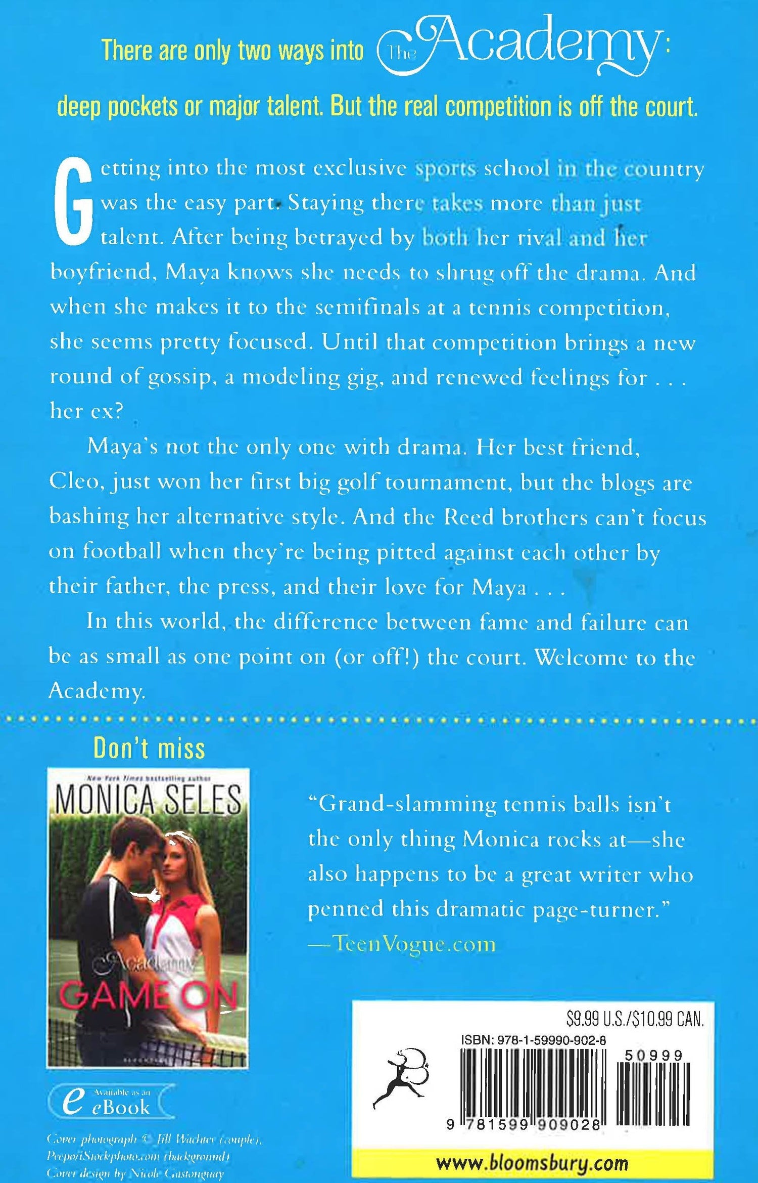 Getting into The Academy is the easy part. Staying there takes more than just talent. After being betrayed by her rival and her boyfriend, Maya knows she needs to shrug off the drama and focus on her game. And after a strong showing in the semi-finals at a tennis competition, Maya seems pretty focused. Until that competition brings a new round of gossip, a modeling gig, and renewed feelings for . . . her ex? And Maya's not the only one with drama. Cleo just won her first big golf tournament, but the blogs are bashing her alternative style. Renee is smitten with the school's newest soccer star, Diego. And the Reed brothers are being pitted against each other by their father, their love for Maya, and the press.