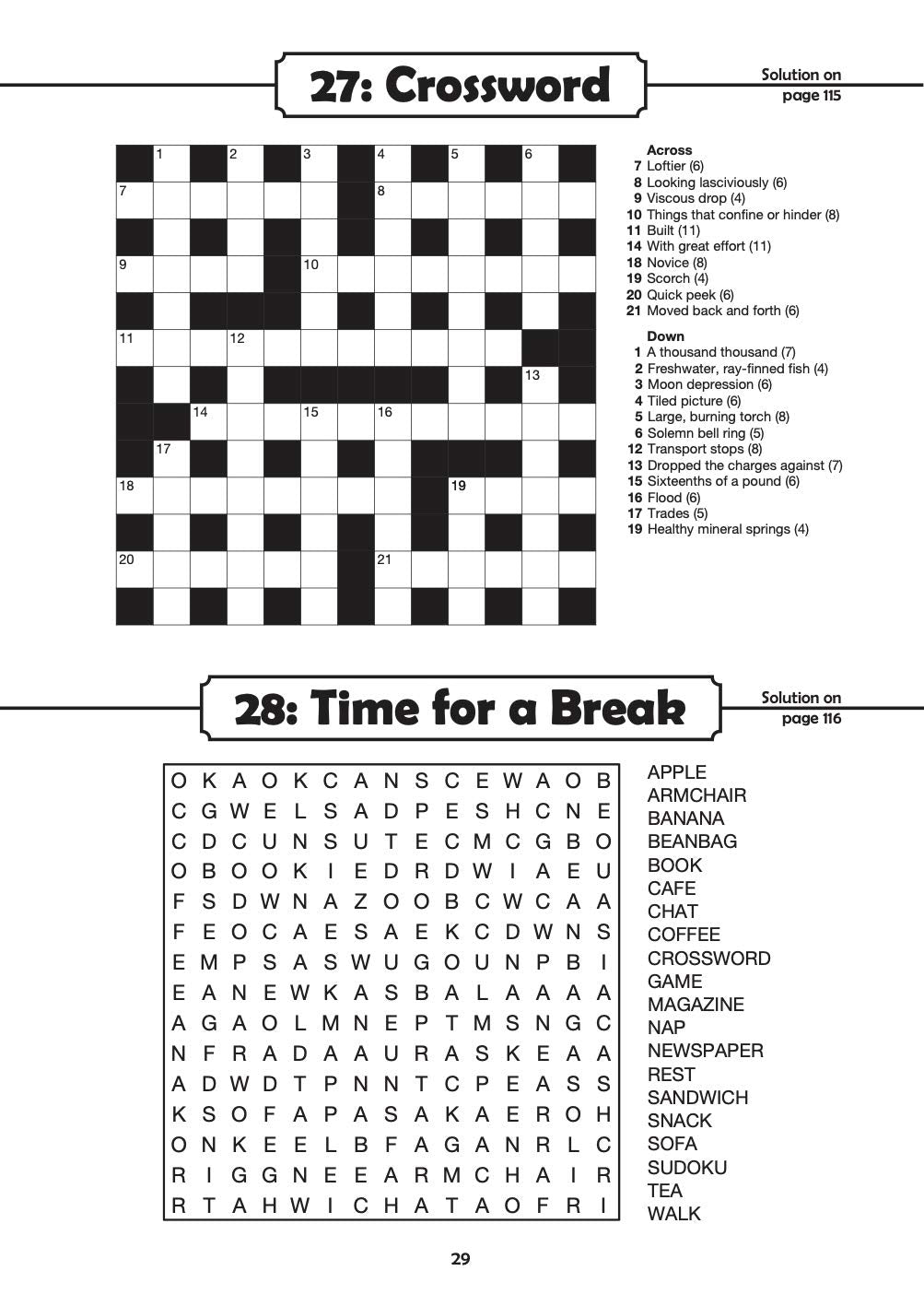 Featuring over 120 fantastic puzzles, mazes, dot-to-dots, crosswords, spot the difference, hanjie, sudoku and more, as well as colouring pages, The Adult Activity Book truly lives up to its name and presents a variety of puzzles and activities that will help boost your brain power. Apart from enhancing the brain, you will find that taking time for yourself and concentrating on an activity has real therapeutic benefits too, as it allows you to recharge your batteries and better cope with the stresses we all face every day.