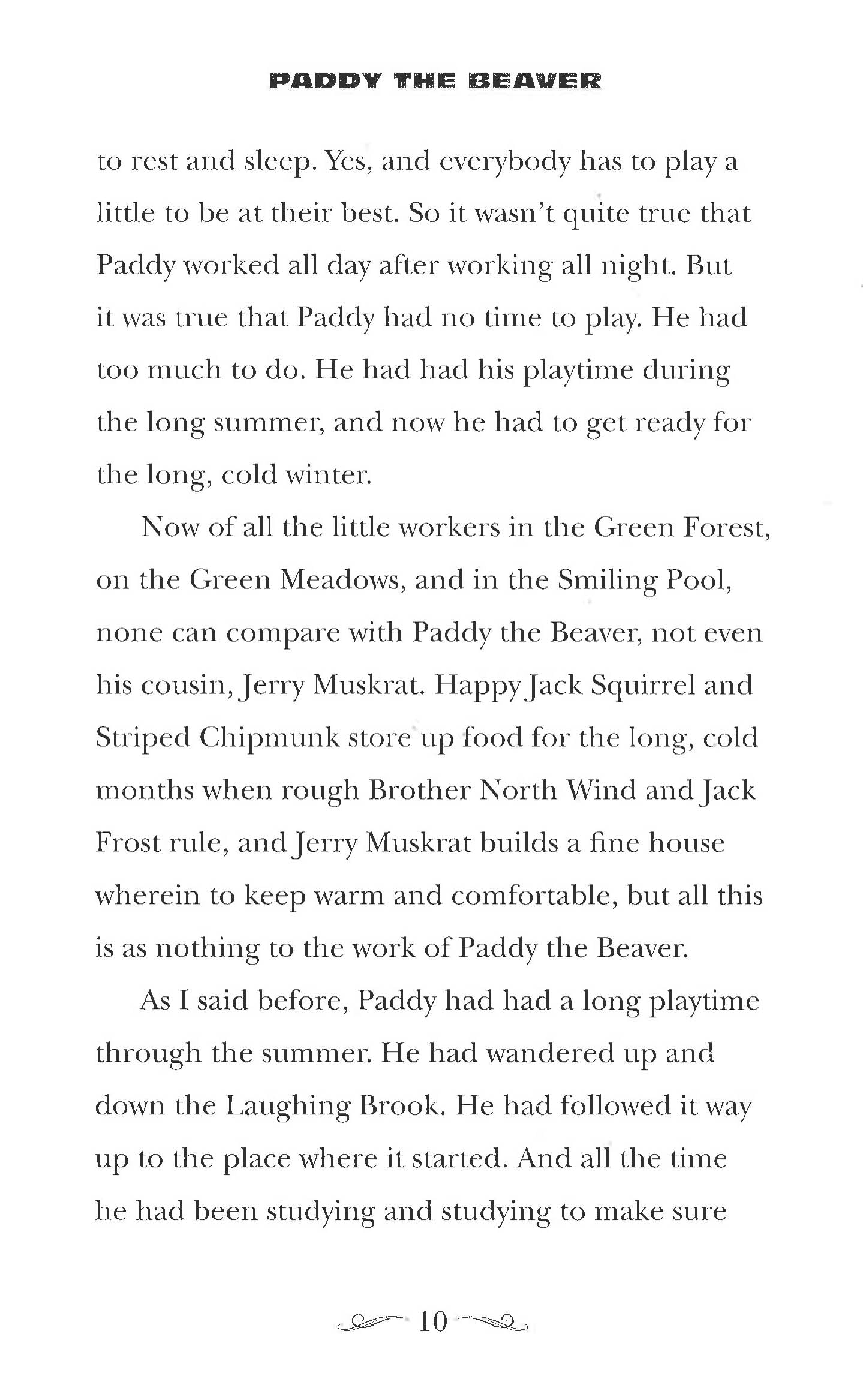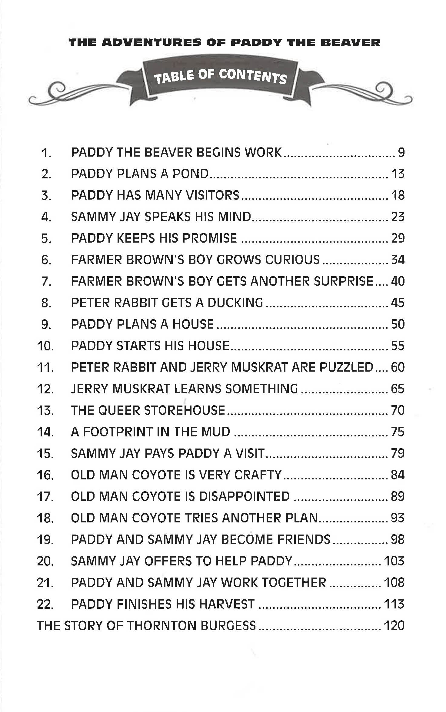 ntroduce your child to Thornton W. Burgess' long-beloved Bedtime Stories, featuring such timeless characters as Peter Cottontail, Jimmy Skunk, and Paddy the Beaver. In The Adventures of Paddy the Beaver, Paddy Beaver arrives from the woods in the North and settles into the Laughing Brook. Strange things start happening, and everyone in the Green Forest is very curious. Who is stealing Sammy Jay's trees? Why is Jerry Muskrat's house suddenly out of the water? How early do you have to get up to outsmart Old Man Coyote? A dedicated naturalist, Burgess imbues his stories with the good humor, imagination, and fun animal antics that all children will enjoy reading during story time. These essential childhood classic stories also feature the original black-and-white illustrations by Harrison Cady, lending this edition a vintage feel. This volume will become a treasured classic on your bedtime story shelf.