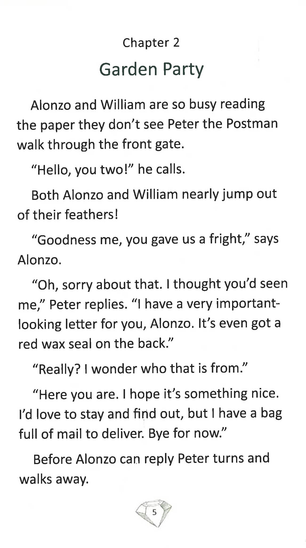 Alonzo the Chicken has an evil twin and a naughty monster to contend with in this action-packed third book in the Alonzo series. Can he capture the Dazzling Diamond, defeat the Gangster Geese and keep the sun in the sky where it belongs? A madcap, partially illustrated adventure that makes a wonderful early reader for boy or girl. .