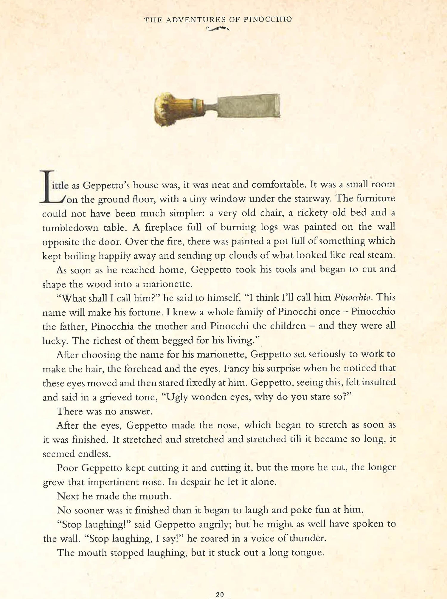 The tale of how the old woodcarver Geppetto made a puppet boy from an unusual piece of wood, who could talk, dance and turn somersaults, has been a much-loved story since it was first written more than 130 years ago. Pinocchio ignores the advice of his kindly father and sets off into the world for some extraordinary adventures...