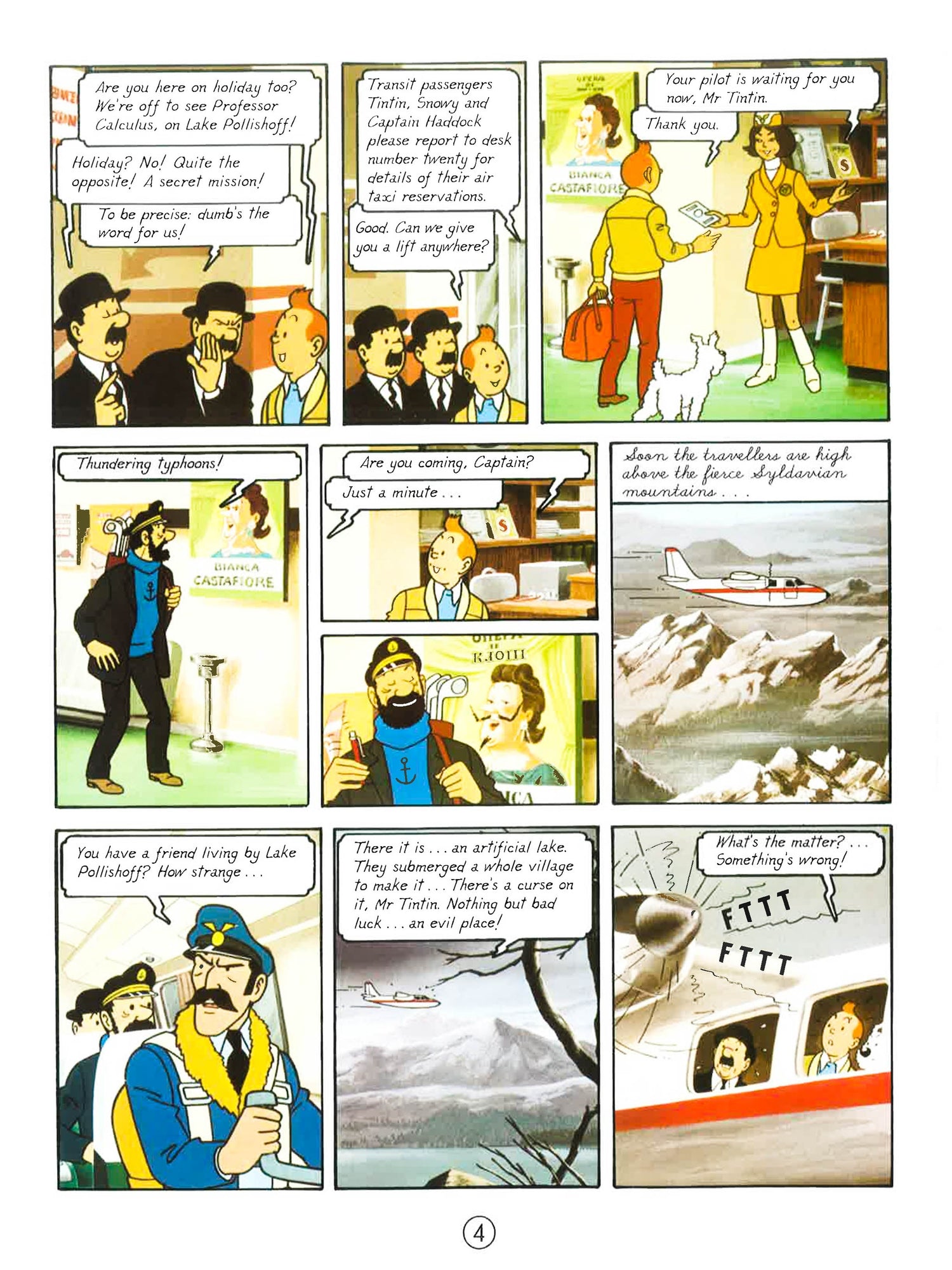 Tintin and his friends are holidaying in Syldavia with Professor Calculus, who has invented an amazing new duplicating machine. But a series of strange occurrences makes Tintin suspicious. Who is the mysterious “King Shark…, and what does he want with Calculus’ machine? Is there a connection with the recent theft of famous works of art from the world’s leading museums? Tintin is determined to find out!