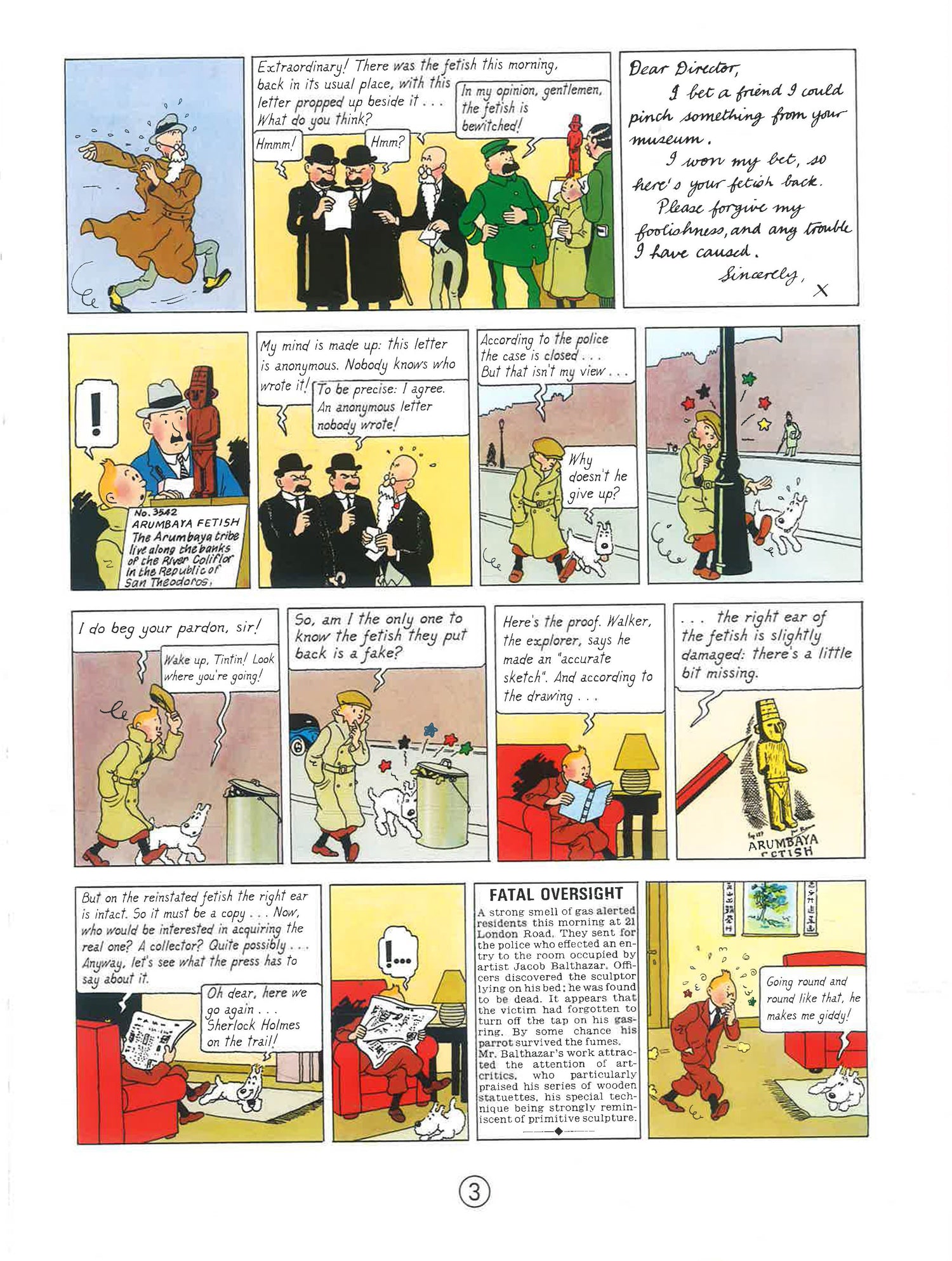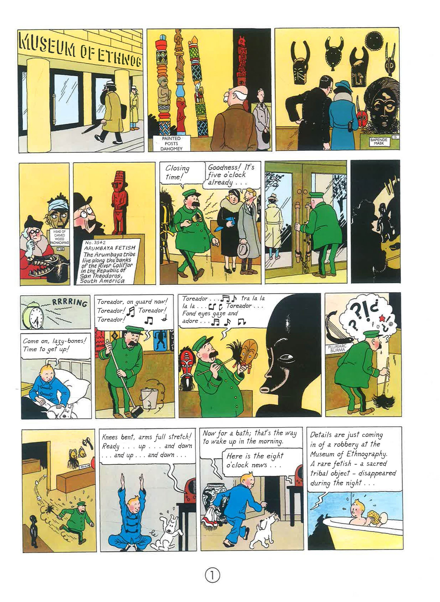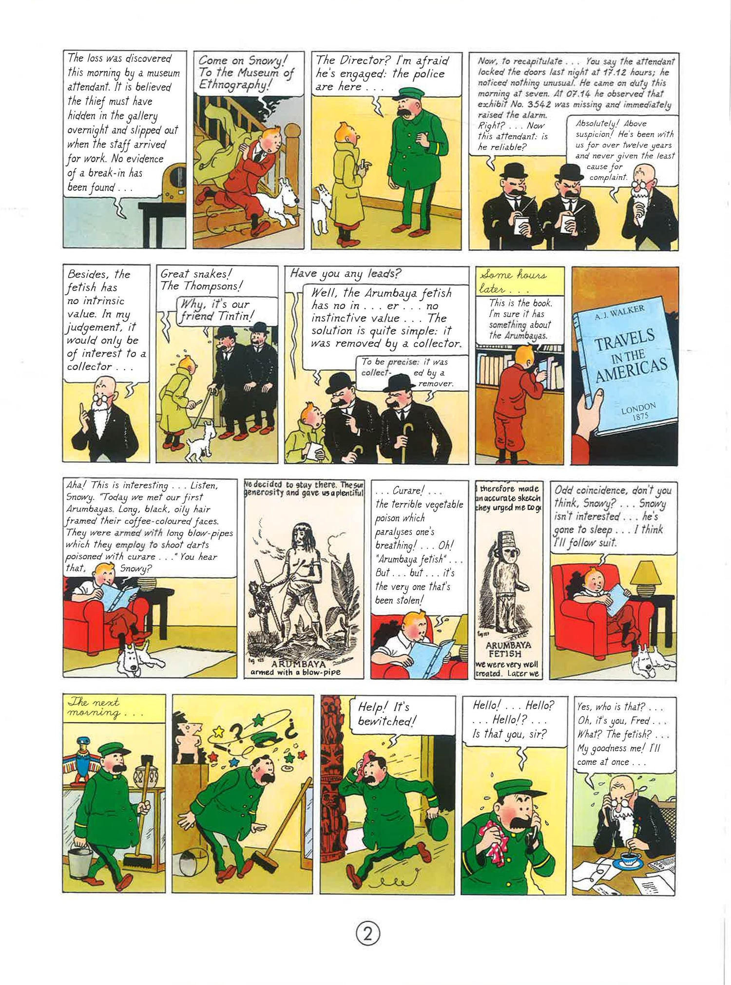 The Arumbaya fetish has been stolen! But with the help of a talking parrot, Tintin is soon on the hunt for the famous artefact, which can be distinguished by its broken ear. He must solve a murder and discover the true value of the fetish, and quick – because he is not the only one on the trail!