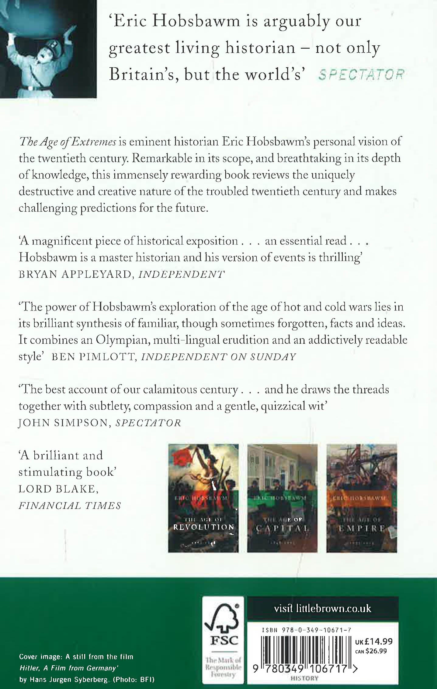 THE AGE OF EXTREMES is eminent historian Eric Hobsbawm's personal vision of the twentieth century. Remarkable in its scope, and breathtaking in its depth of knowledge, this immensely rewarding book reviews the uniquely destructive and creative nature of the troubled twentieth century and makes challenging predicitions for the future.