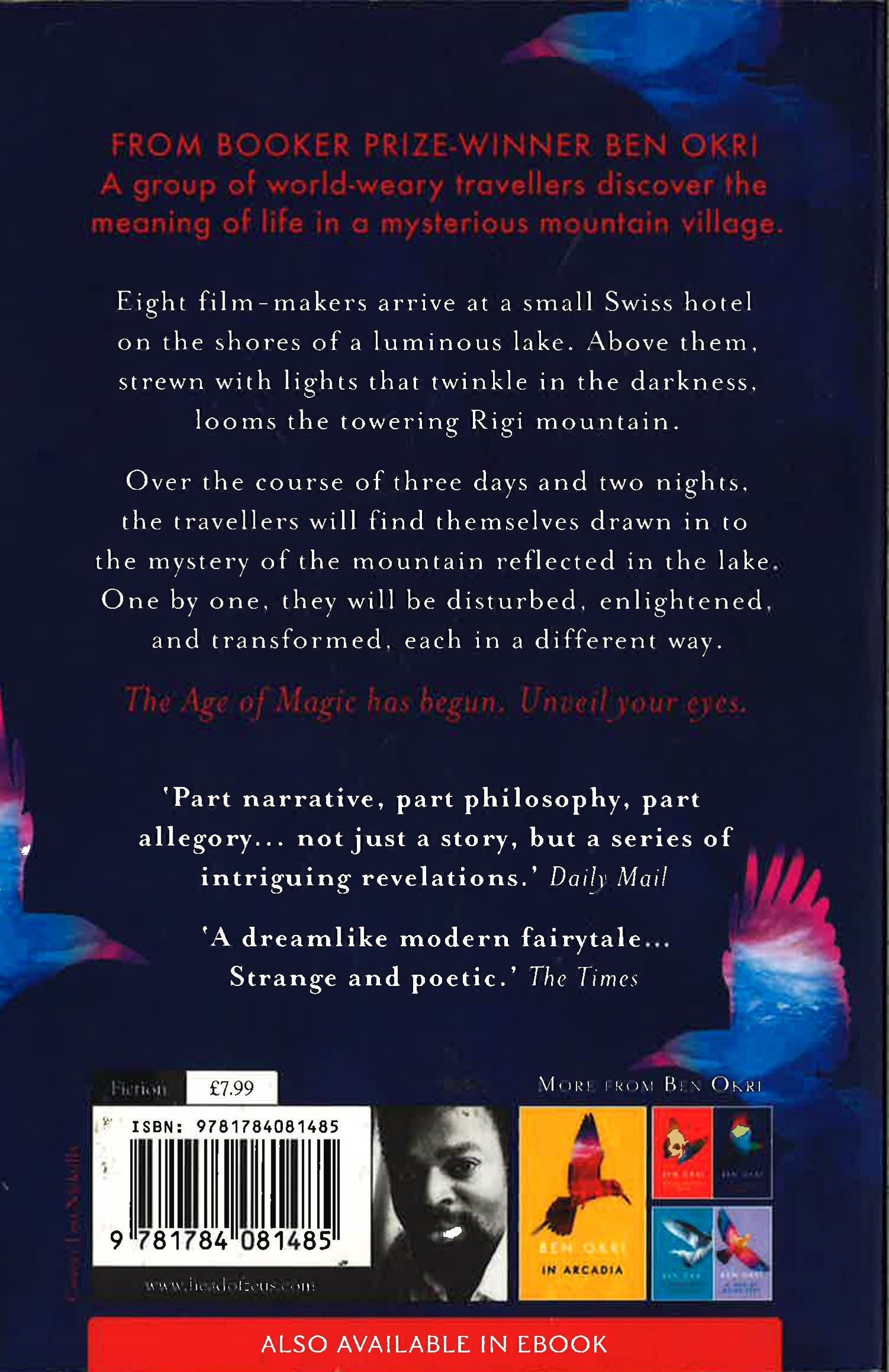 From Booker Prize-Winner Ben Okri. A group of world-weary travellers discover the meaning of life in a mysterious mountain village. Eight film-makers arrive at a small Swiss hotel on the shores of a luminous lake. Above them, strewn with lights that twinkle in the darkness, looms the towering Rigi mountain. Over the course of three days and two nights, the travellers will find themselves drawn in to the mystery of the mountain reflected in the lake. One by one, they will be disturbed, enlightened, and transformed, each in a different way. The Age of Magic has begun. Unveil your eyes. ALSO BY BEN OKRI: Astonishing the Gods, In Arcadia, A Way of Being Free, Dangerous Love.