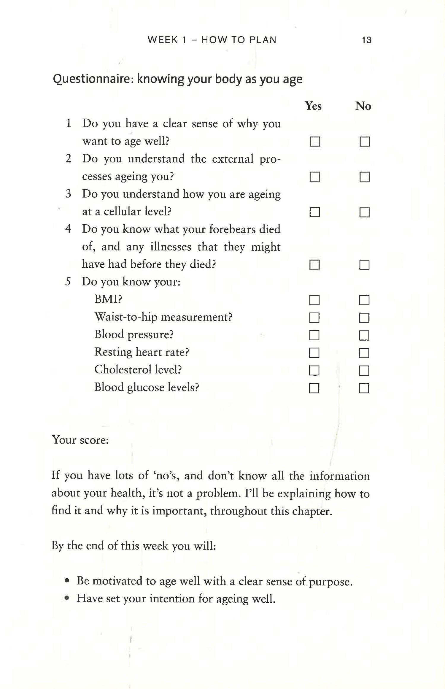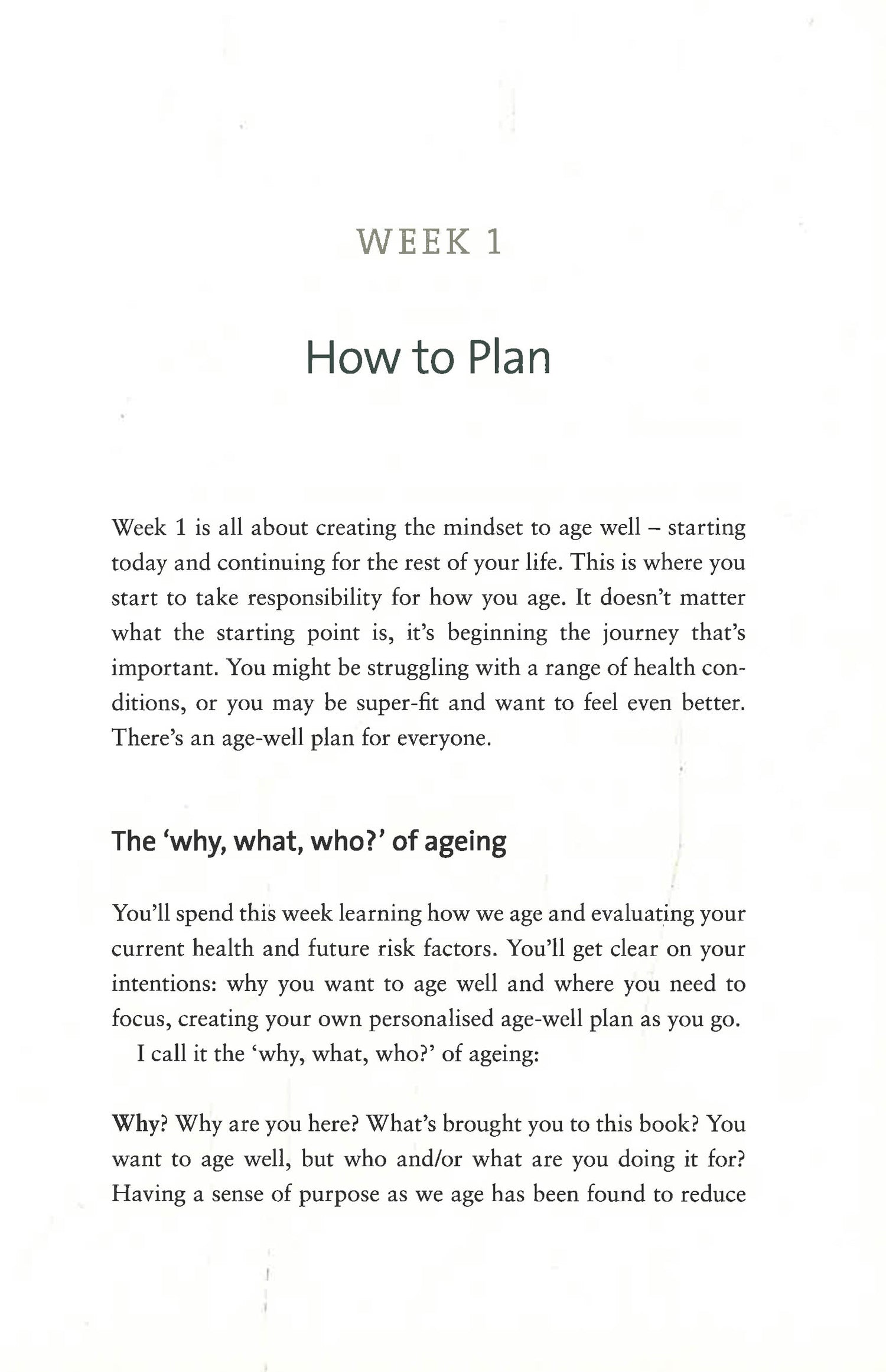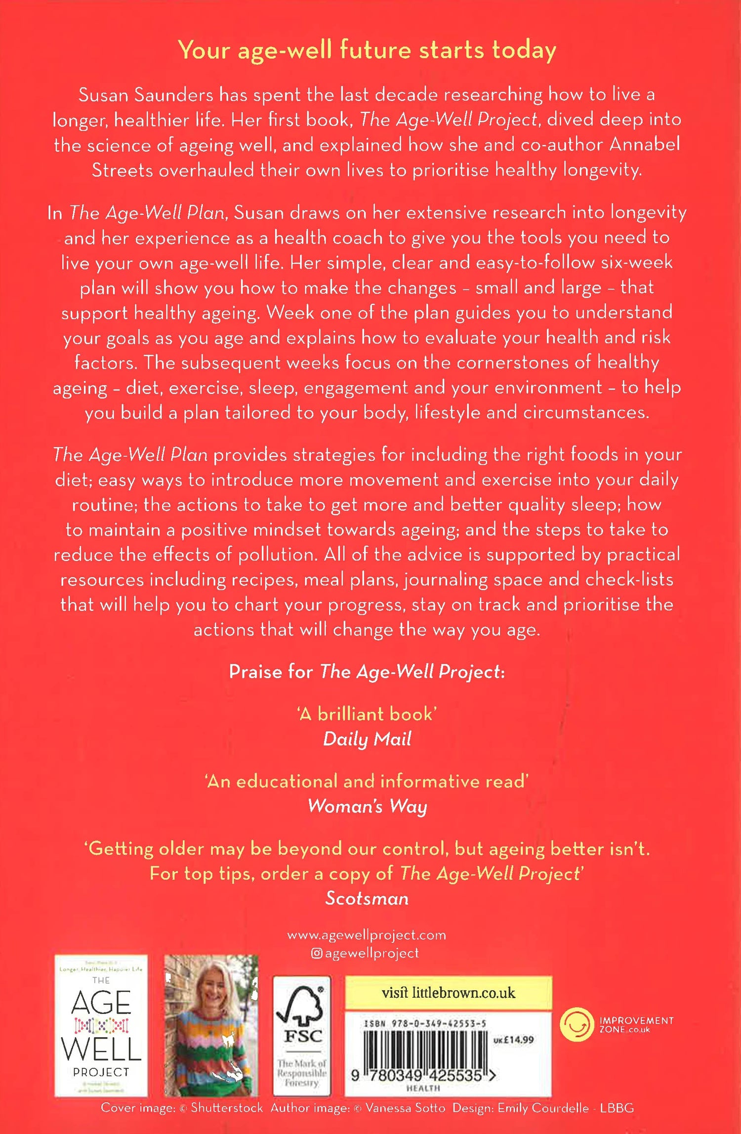 The Age-Well Project dived deep into the science of ageing well, and authors Annabel and Susan explained how they overhauled their own lives to prioritise healthy longevity. In The Age-Well Plan, Susan draws on almost a decade of extensive research into healthy longevity and her experience as a health coach to give you the tools you need to live your own age-well life. Her simple, clear and easy-to-follow six-week plan will show you how to make changes -- small and large -- to support healthy ageing, and prioritise the changes most appropriate for your body, lifestyle and circumstances.The first week of the plan guides you to understand your goals as you age and explains how to evaluate your current health and risk factors, in order to devise a bespoke plan for your body and brain. The subsequent weeks focus on the key elements of healthy ageing -- diet, exercise, sleep, engagement and the environment -- to help you build a personalised plan that will kickstart your age-well life.