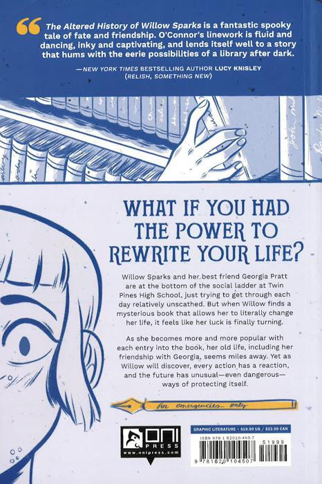 What happens when you can finally get everything you ever wanted? Willow Sparks and her best friend Georgia Pratt are at the bottom of the social ladder at Twin Pines High School, just trying to get through each day relatively unscathed. But when Willow finds a mysterious book that allows her to literally change her life, it feels like her luck is finally turning. Becoming more and more popular with each entry into the book, her old life, including her friendship with Georgia, seems miles away. Yet as Willow will discover, every action has a reaction, and the future has unusual-even dangerous-ways of protecting itself.
