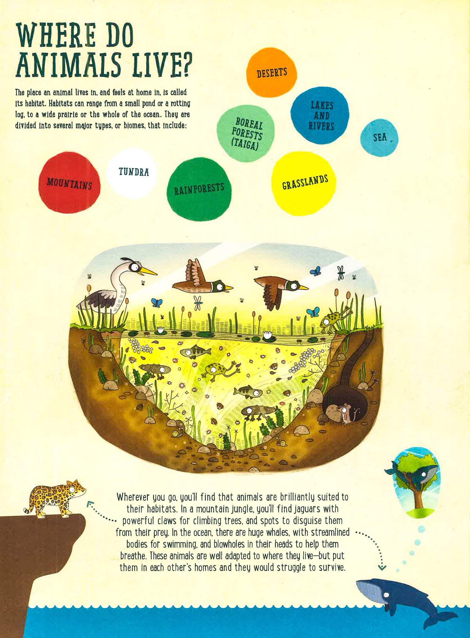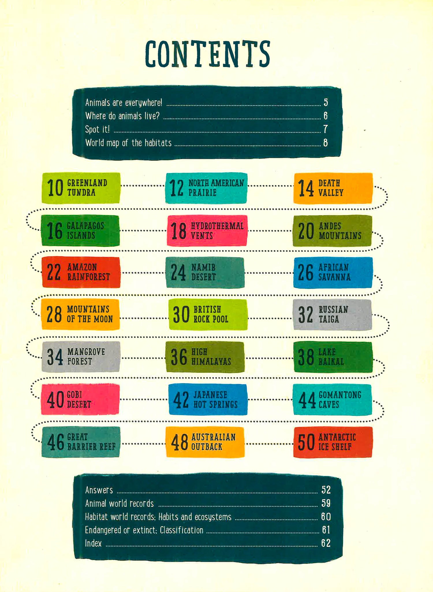 From the heights of the Himalayas to the deepest depths of the Pacific ocean, explore these 21 exciting places and meet the animals who live in them. Visit the jungle caves of Borneo, the Australian outback, the Arctic ice floes and many, many more!