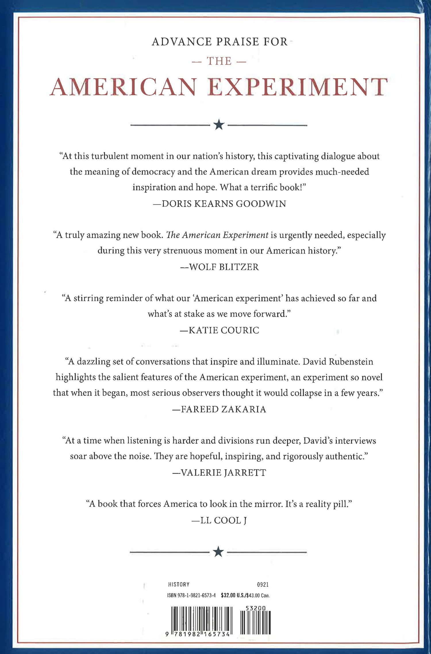 American icons and historians explore the grand American experiment in democracy, culture, innovation, and ideas, featuring Ken Burns, Madeleine Albright, Paul Simon, Billie Jean King, Henry Louis Gates Jr., and many more—the capstone book in a trilogy from David Rubenstein, New York Times bestselling author of How to Lead and The American Story.