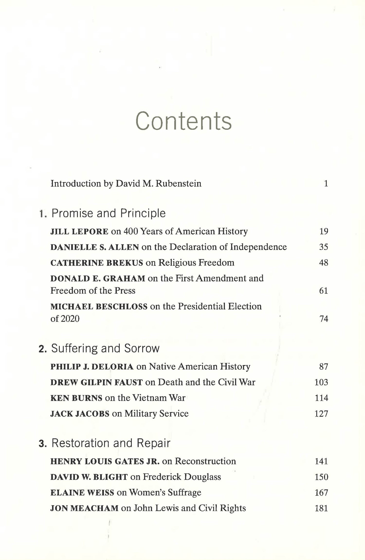 In this lively collection of conversations—the third in a series from David Rubenstein—some of our nations’ greatest minds explore the inspiring story of America as a grand experiment in democracy, culture, innovation, and ideas.