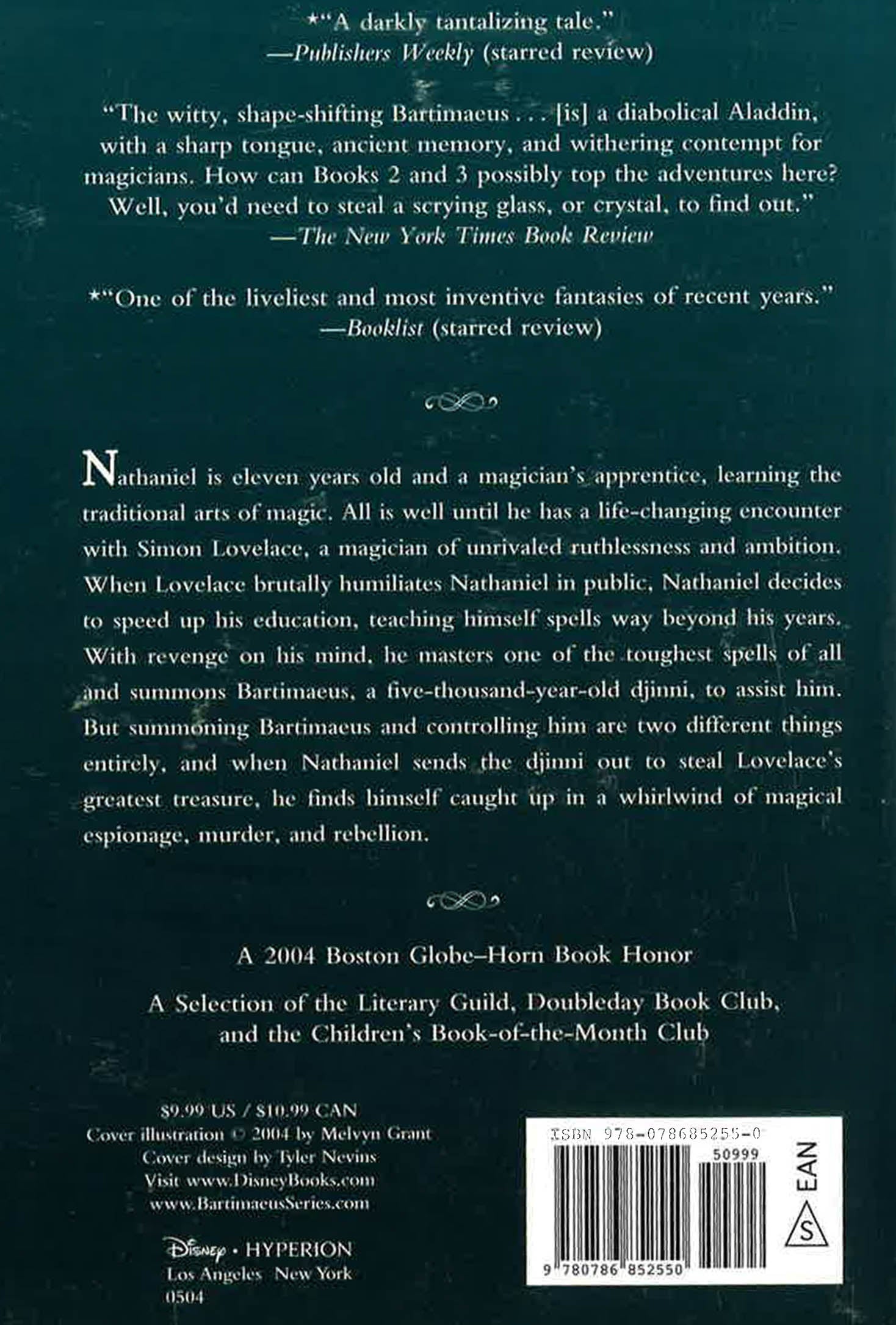 Set in modern-day London, this first book in a gripping new trilogy introduces young magician's apprentice Nathaniel. Humiliated by a hotshot wizard, Nathaniel summons the not-so-tame djinni, Bartimaeus, and sends him to steal the Amulet of Samarkand.