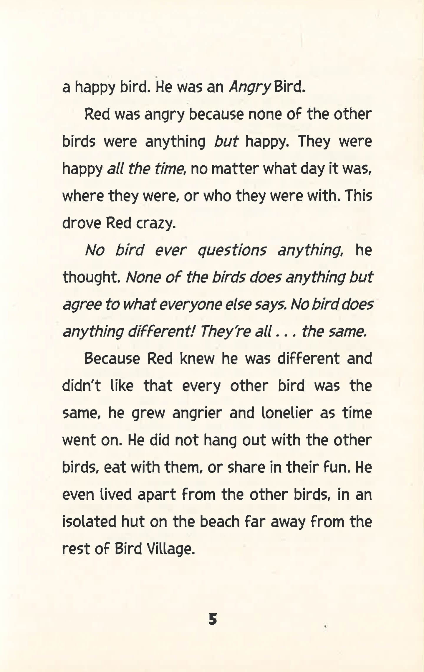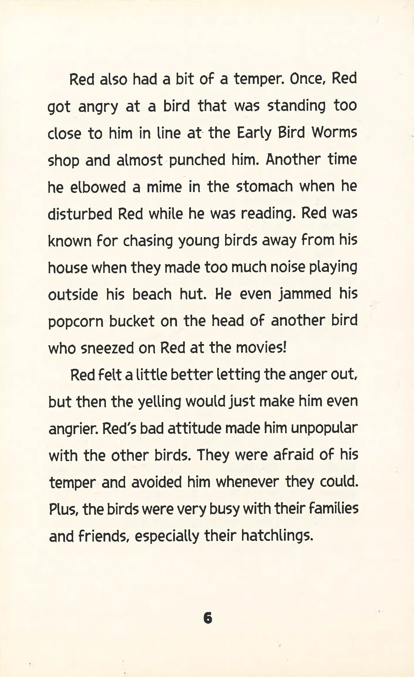 Life?s a beach for the happy birds of Bird Island. They work, play, and raise their hatchlings without a care in the world. A few Angry Birds can ruffle some feathers, but that?s what anger-management classes are for. Red ? the angriest of them all ? doesn?t want to go to class. He?d rather be alone. Then a ship of pigs lands on the island and the birds welcome the fun-loving pigs. As more ships arrive, filled with pigs and their crazy contraptions, Red grows suspicious. Can he channel his anger to uncover the pigs' big plans?