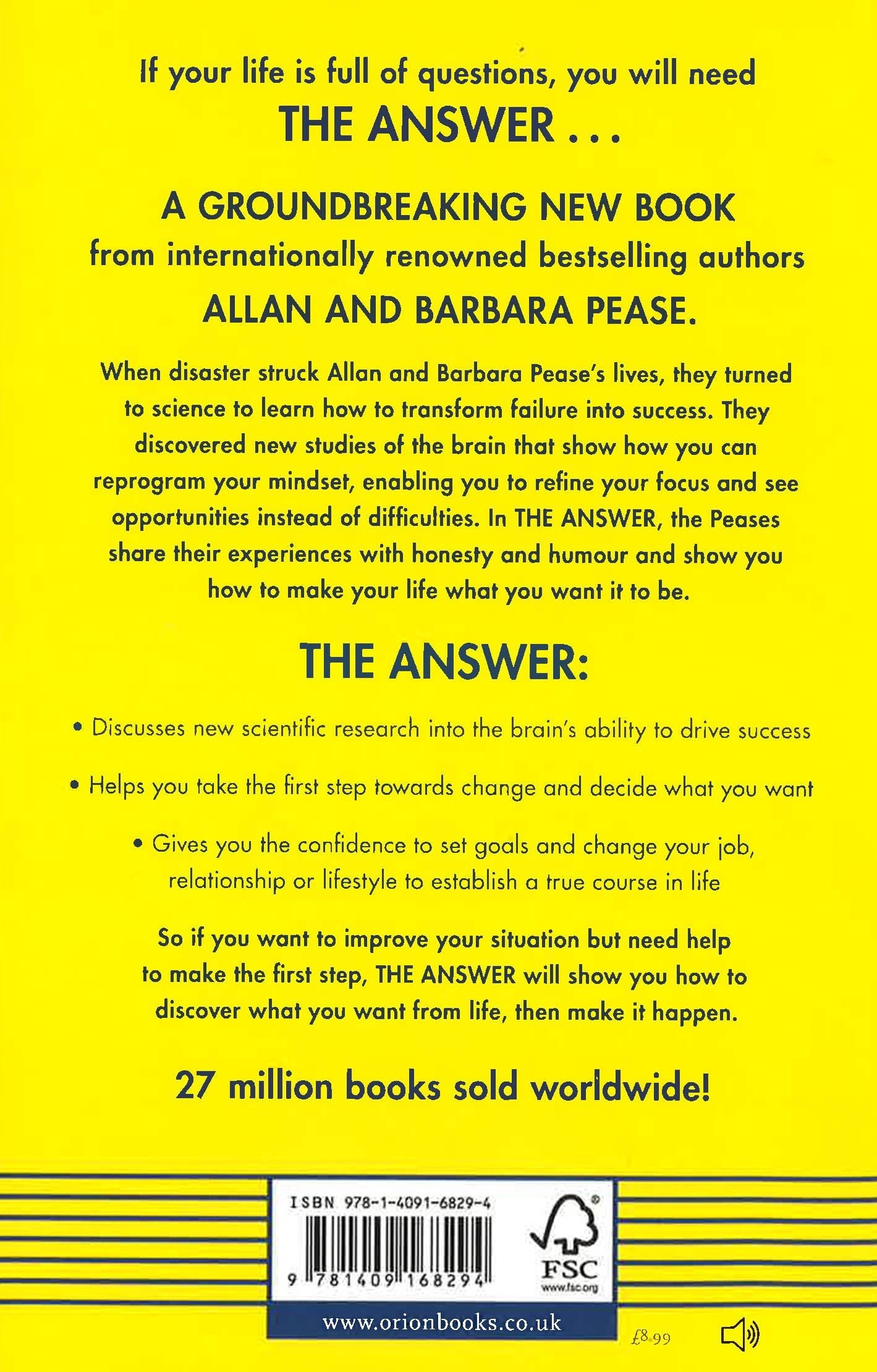 How positive thinking can change your life and help you reach your goals, by the bestselling authors of THE DEFINITIVE BOOK OF BODY LANGUAGE. Allan and Barbara Pease are the internationally renowned bestselling authors of THE DEFINITIVE BOOK OF BODY LANGUAGE and WHY MEN DON'T LISTEN AND WOMEN CAN'T READ MAPS, and have sold over 27 million books. In THE ANSWER, international bestselling authors Allan and Barbara Pease share all of the tips and wisdom they have learned on their own journey to success, and show readers how it is possible to achieve their goals. You will learn how to: - Set and action clearly defined goals - Overcome obstacles, regardless of what others think, do or say - Take responsibility for your life circumstances - Apply the art of visualisation and the power of affirmation - Deal with stress, fear and worry - Never give up. This accessible and practical guide will help readers take control of their life, become the person they want to be, and deal with obstacles and challenges no matter how difficult they may seem.