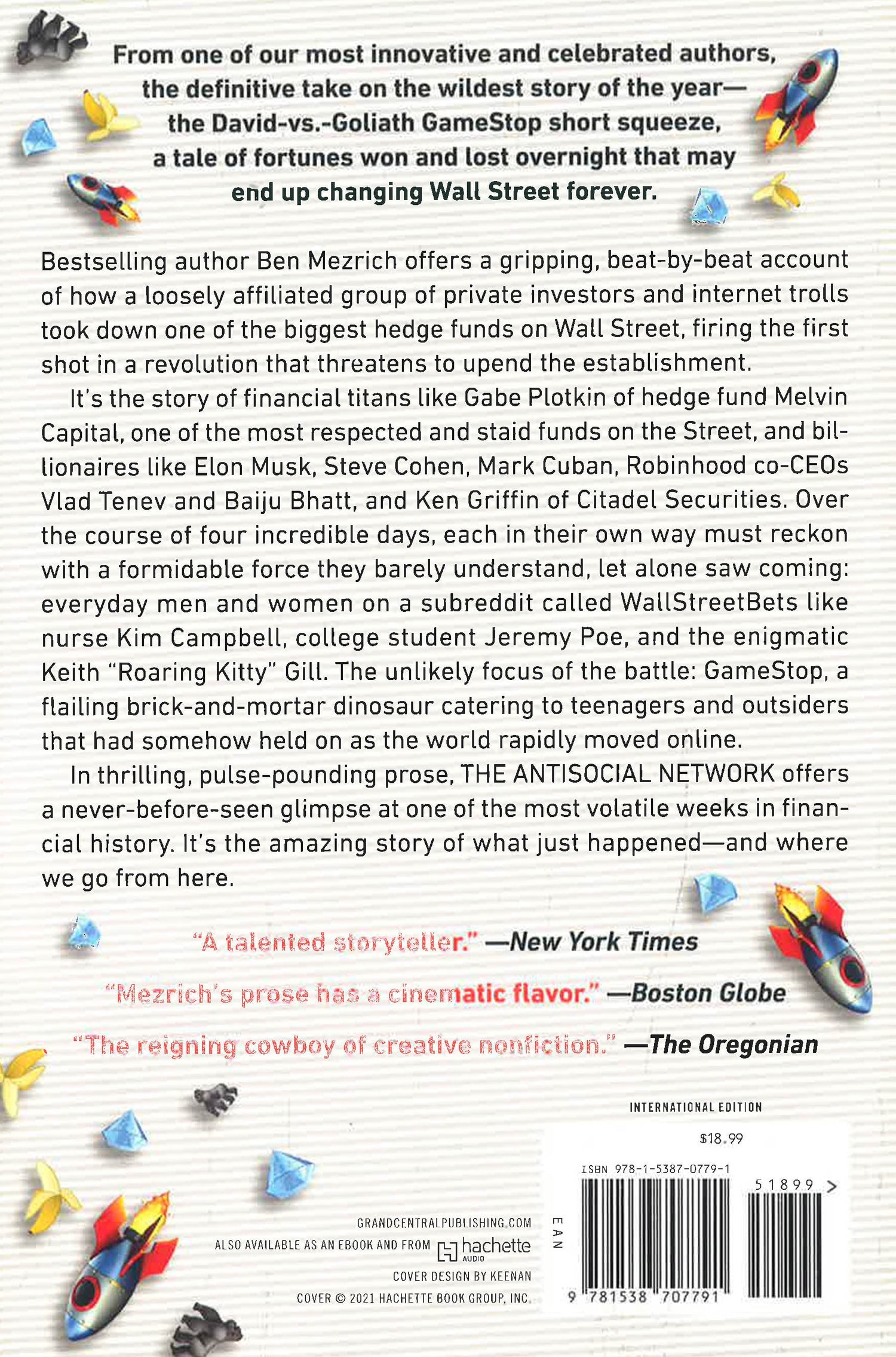 Named a Best Book of the Year by New York Post! From one of our most innovative and celebrated authors, the definitive take on the wildest story of the year— the David-vs.-Goliath GameStop short squeeze, a tale of fortunes won and lost overnight that may end up changing Wall Street forever. Bestselling author Ben Mezrich offers a gripping, beat-by-beat account of how a loosely affiliate group of private investors and internet trolls on a subreddit called WallStreetBets took down one of the biggest hedge funds on Wall Street, firing the first shot in a revolution that threatens to upend the establishment. It’s the story of financial titans like Gabe Plotkin of hedge fund Melvin Capital, one of the most respected and staid funds on the Street, billionaires like Elon Musk, Steve Cohen, Mark Cuban, Robinhood co-CEOs Vlad Tenev and Baiju Bhatt, and Ken Griffin of Citadel Securities. Over the course of four incredible days, each in their own way must reckon with a formidable force they barely understand, let alone saw coming: everyday men and women on WallStreetBets like nurse Kim Campbell, college student Jeremy Poe, and the enigmatic Keith “RoaringKitty” Gill, whose unfiltered livestream videos captivated a new generation of stock market enthusiasts. The unlikely focus of the battle: GameStop, a flailing brick-and-mortar dinosaur catering to teenagers and outsiders that had somehow held on as the world rapidly moved online. At first, WallStreetBets was a joke—a meme-filled, freewheeling place to share shoot-the-moon investment tips, laugh about big losses, and post diamond hand emojis. Until some members noticed an opportunity in GameStop—and rode a rocket ship to tens of millions of dollars in earnings overnight.