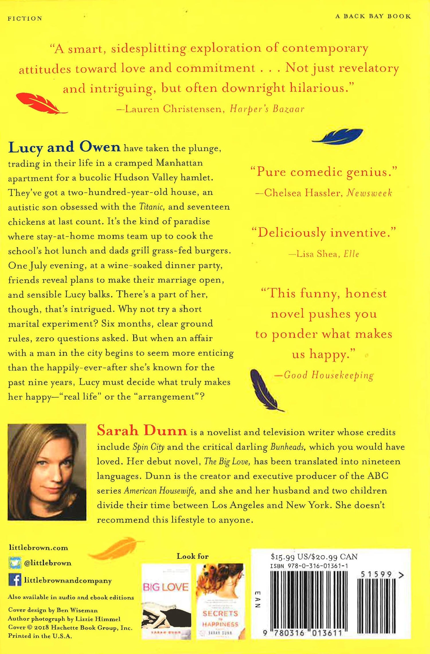 A hilarious and emotionally charged novel about a couple who embark on an open marriage -- what could possibly go wrong?Lucy and Owen, ambitious, thoroughly therapized New Yorkers, have taken the plunge, trading in their crazy life in a cramped apartment for Beekman, a bucolic Hudson Valley exurb. They've got a two hundred year-old house, an autistic son obsessed with the Titanic, and seventeen chickens, at last count. It's the kind of paradise where stay-at-home moms team up to cook the school's ''hot lunch,'' dads grill grass-fed burgers, and, as Lucy observes, ''chopping kale has become a certain kind of American housewife's version of chopping wood.''When friends at a wine-soaked dinner party reveal they've made their marriage open, sensible Lucy balks. There's a part of her, though -- the part that worries she's become too comfortable being invisible -- that's intrigued. Why not try a short marital experiment? Six months, clear ground rules, zero questions asked. When an affair with a man in the city begins to seem more enticing than the happily-ever-after she's known for the past nine years, Lucy must decide what truly makes her happy -- ''real life,'' or the ''experiment?''