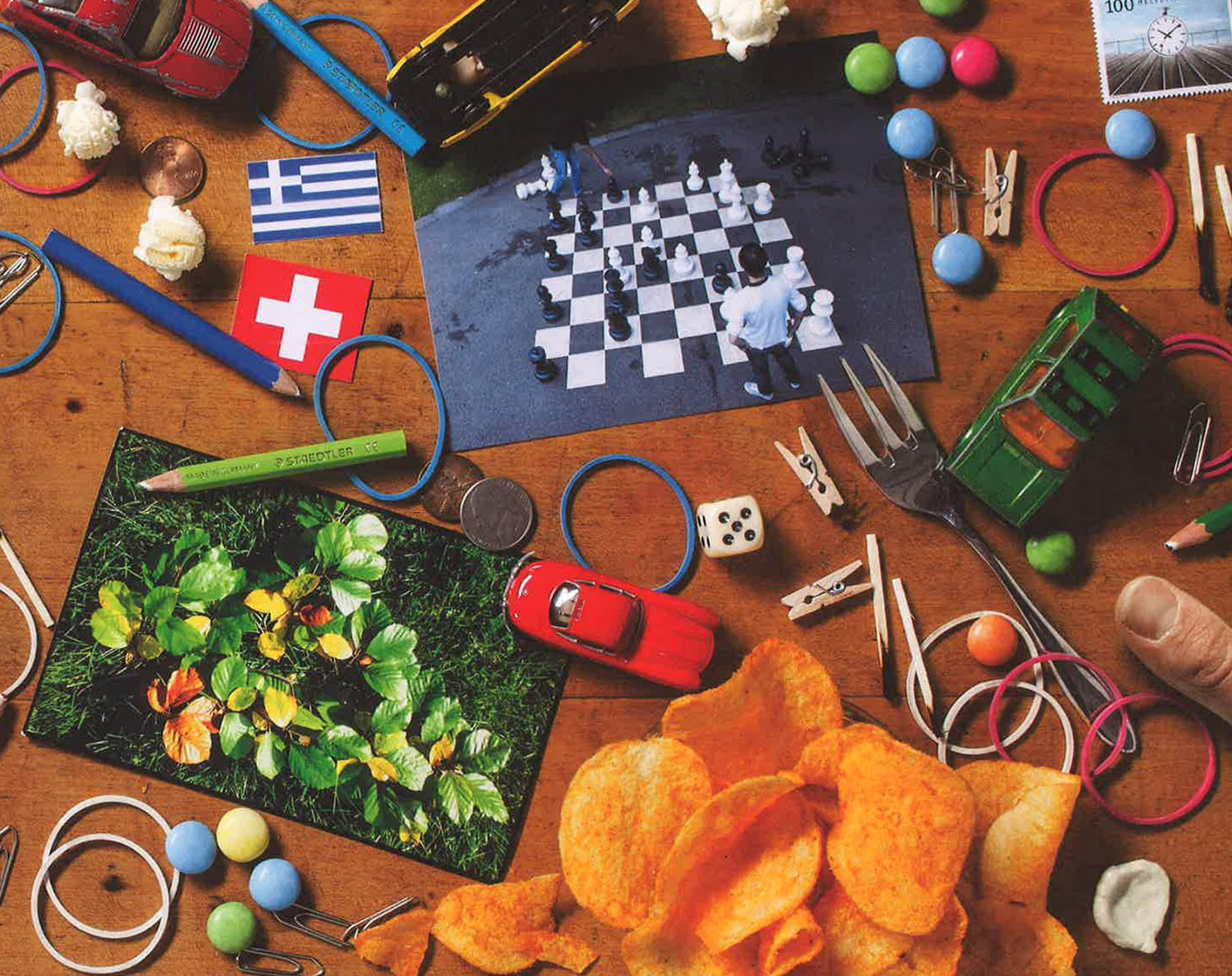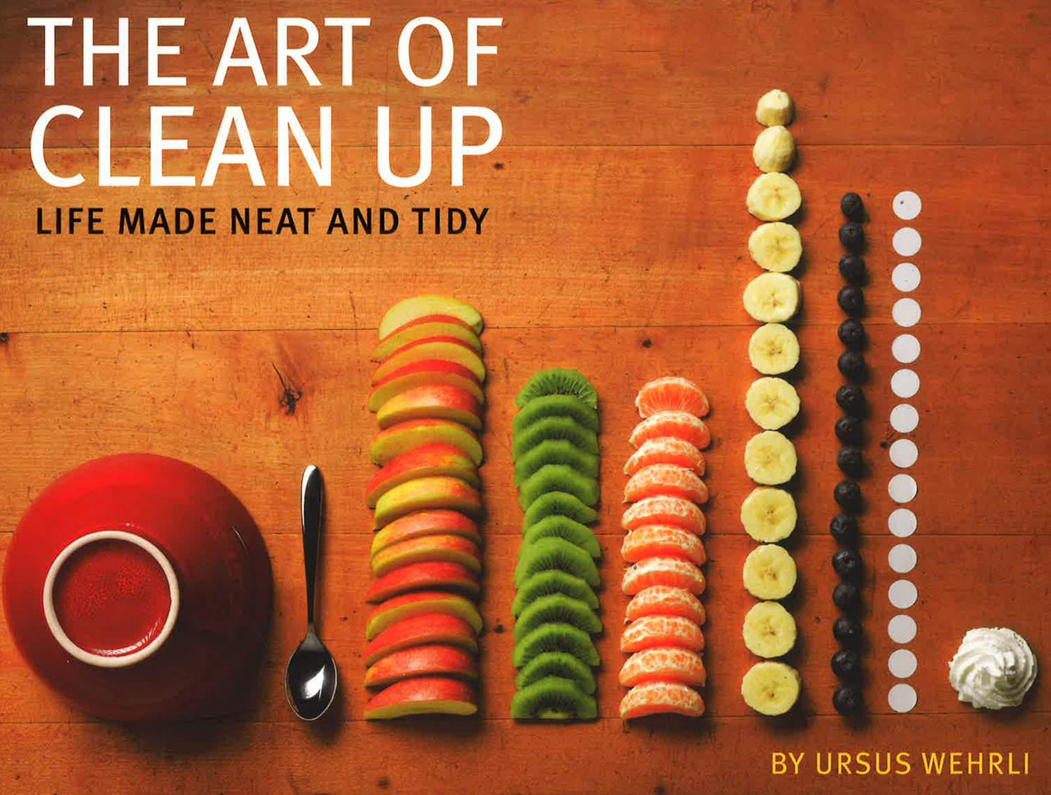 Swiss comedian and cabaret artist Ursus Wehrli loves organization in the extreme. In Organized! The Art of Clean Up, Wehrli arranges a bowl of alphabet soup, a group of pool-goers, a spruce branch, and other elements of our chaotic world into neat rows sorted by color, size, shape, or type.