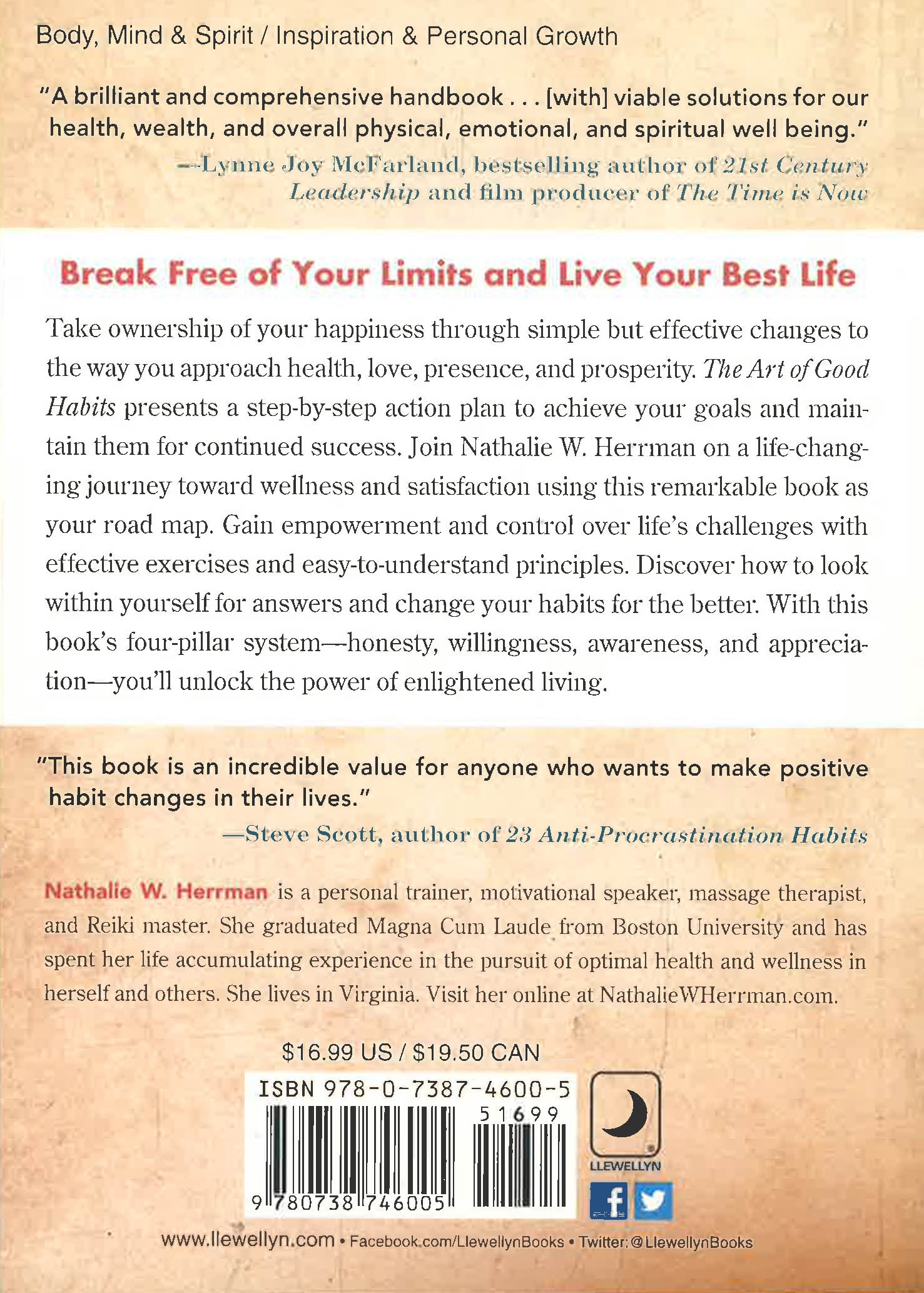 Organised by those four subjects, The Art of Good Habits presents a step-by-step action plan to achieve your goals and maintain them for continued success. Join Nathalie W. Herrman on a life-changing journey toward wellness and satisfaction using this remarkable book as your road map. Gain empowerment and control over life's challenges with effective exercises and easy-to-understand principles. Discover how to look within yourself for answers and take control of your habits, changing them for the better. With this book's four-pillar system-honesty, willingness, awareness, and appreciation-you can unlock the power of enlightened living.