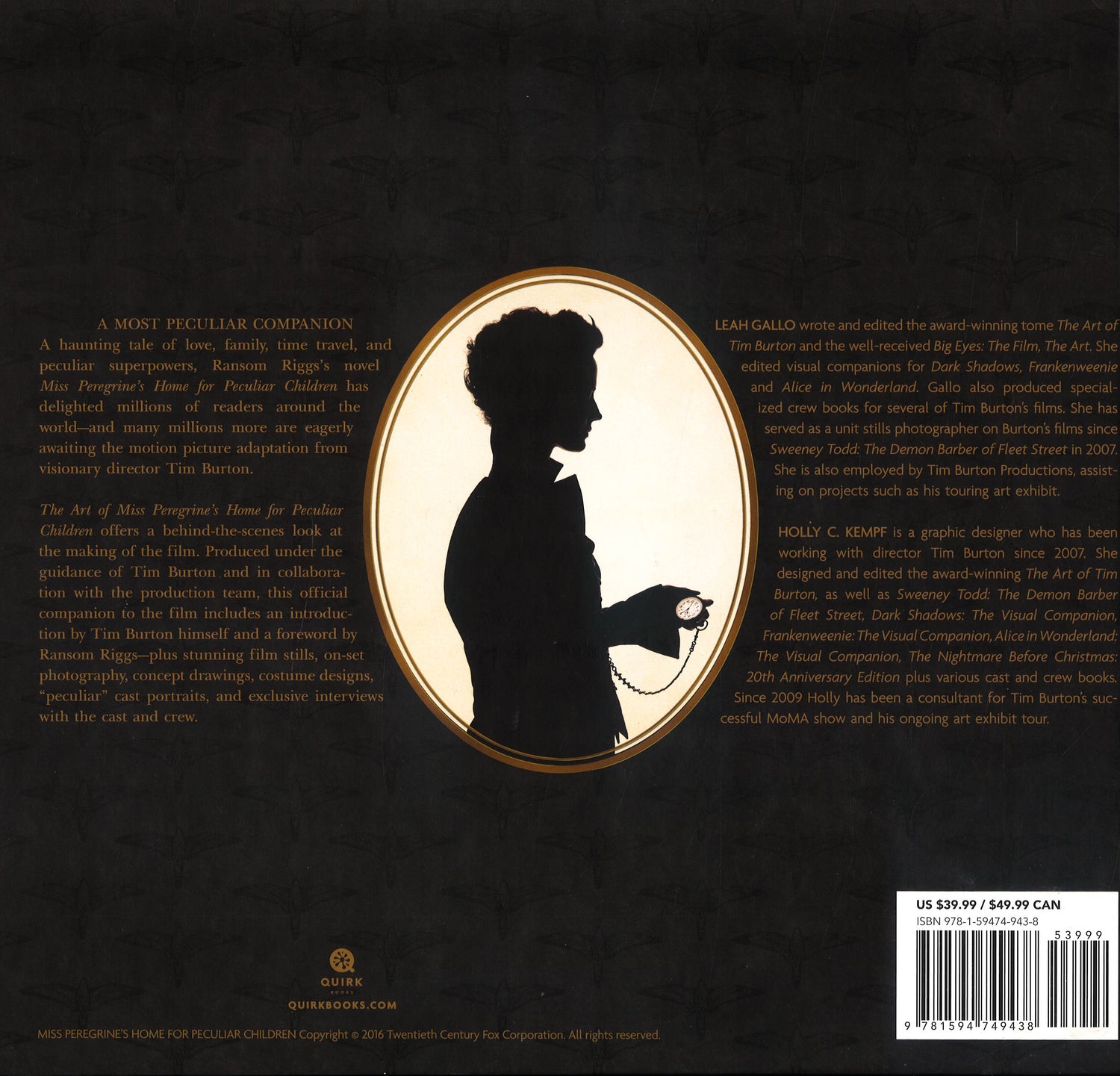 Witness the genesis of peculiardom! This visual tour of the movie world of Miss Peregrine's Home for Peculiar Children, created by iconic filmmaker Tim Burton, is sure to be a must-have for fans of the series. A companion book to the film, it features behind-the-scenes images and set information from two of Burton's longtime collaborators, including details on costume design, cinematography, set design, concept art, and more. The beautiful hardback edition makes a perfect gift or collector's item.