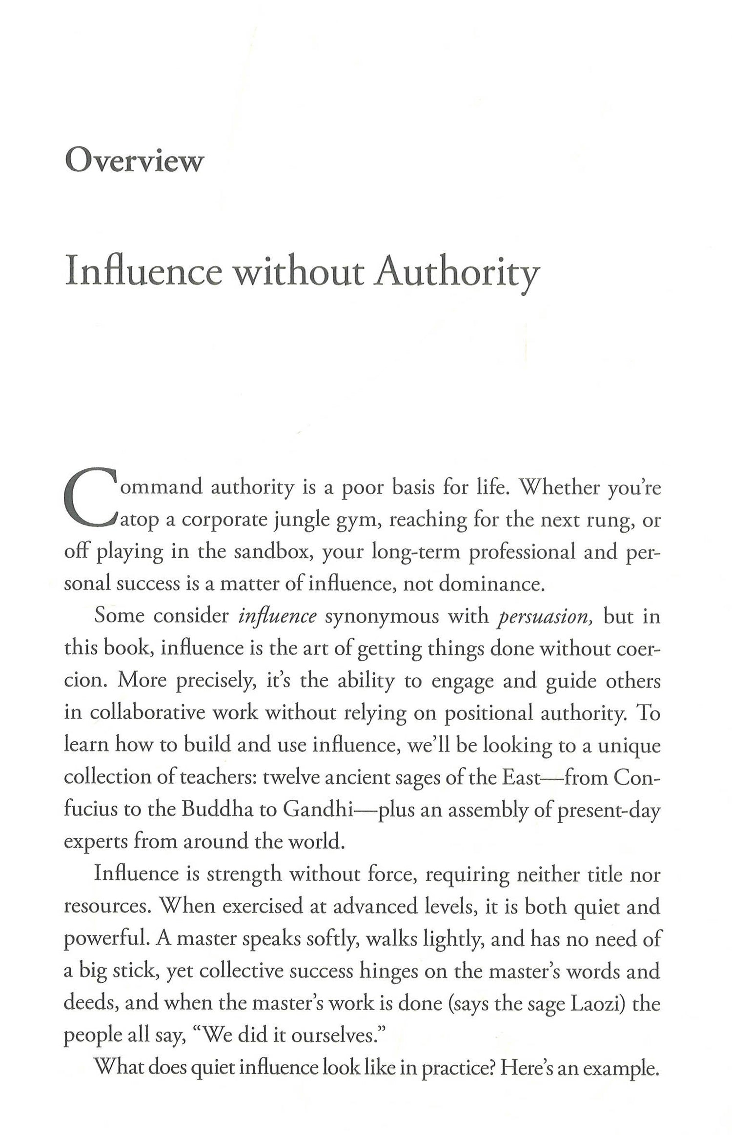 Influence is getting things done without coercion. It's strength without force-mindfulness in action. Master influencers walk lightly, talk softly and have no need of a big stick, yet collective success hinges on their words and deeds.Anyone can be a quiet influencer. Featuring twelve specific practices, twelve typical pitfalls and dozens of powerful stories and examples, The Art of Quiet Influence is a roadmap for the journey. Author Jocelyn Davis weaves together the timeless wisdom of Eastern thinkers-from Confucius to the Buddha, from Rumi to Gandhi-with research and insights from modern-day experts, revealing what's wrong with the Western view of influence as short-term persuasion and showing instead how to create trust-based collaborations with lasting impact.