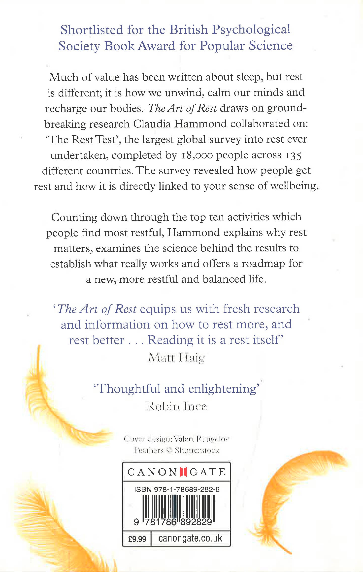 Much of value has been written about sleep, but rest is different; it is how we unwind, calm our minds and recharge our bodies. The Art of Rest draws on ground-breaking research Claudia Hammond collaborated on: 'The Rest Test', the largest global survey into rest ever undertaken, completed by 18,000 people across 135 different countries. The survey revealed how people get rest and how it is directly linked to your sense of wellbeing.
