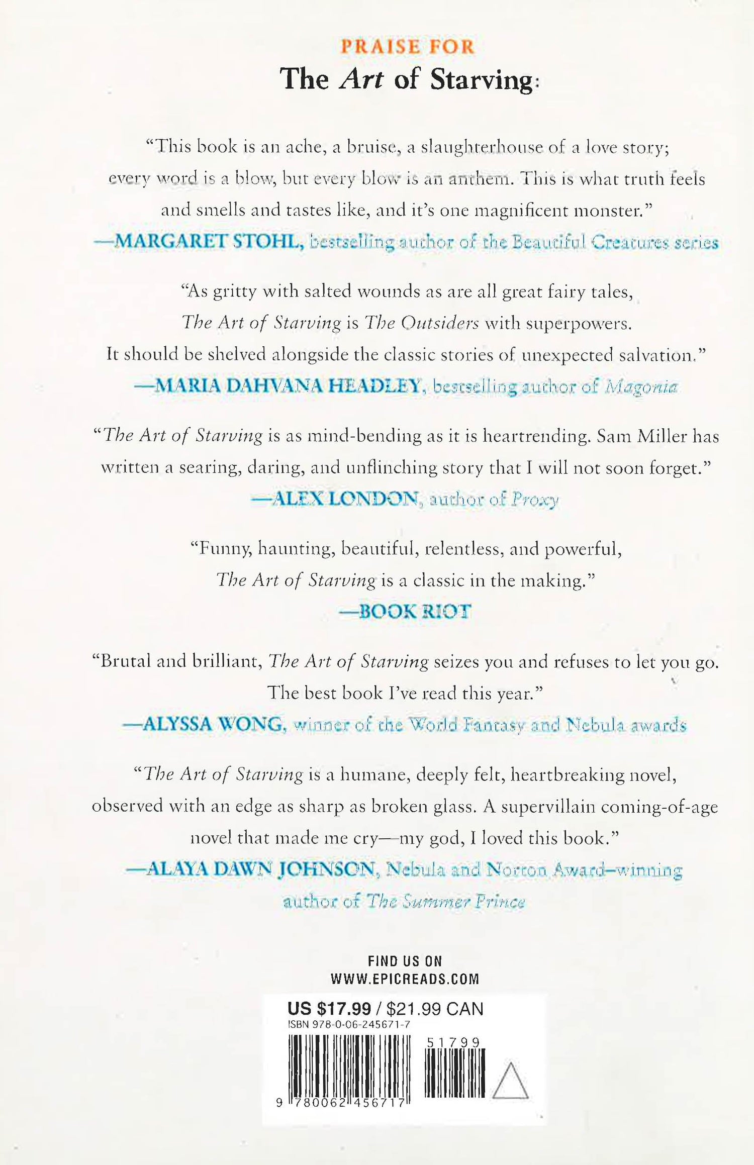 "Funny, haunting, beautiful, relentless, and powerful, The Art of Starving is a classic in the making."--Book Riot