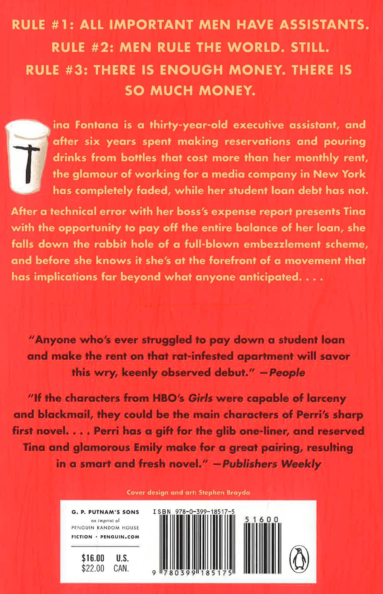 Ocean's Eleven meets The Devil Wears Prada" (The Skimm) in this hilarious, razor-sharp debut novel about a group of overeducated and underpaid women who decide they've finally had enough... Rule #1: All important men have assistants. Rule #2: Men rule the world. Still. Rule #3: There is enough money. There is so much money. Tina Fontana is a thirty-year-old executive assistant to Robert Barlow, the CEO of Titan Corp., a multinational media conglomerate. She's excellent at her job and beloved by her famous boss--but after six years of making reservations and pouring drinks from bottles that cost more than her rent, the glamour of working for a media company in New York has completely faded, but her student loan debt has not. When a technical error with Robert's expense report presents Tina with the opportunity to pay off the entire balance of her loans with what would essentially be pocket change for her boss, she hesitates. She's always played by the rules, but this would be a life-changer. As Tina begins to fall down the rabbit hole of her morally questionable plan, other assistants with crushing debt and fewer scruples approach her to say that they want in. Before she knows it, she's at the forefront of a movement that has implications far beyond what anyone anticipated... *This book may have remainder mark*