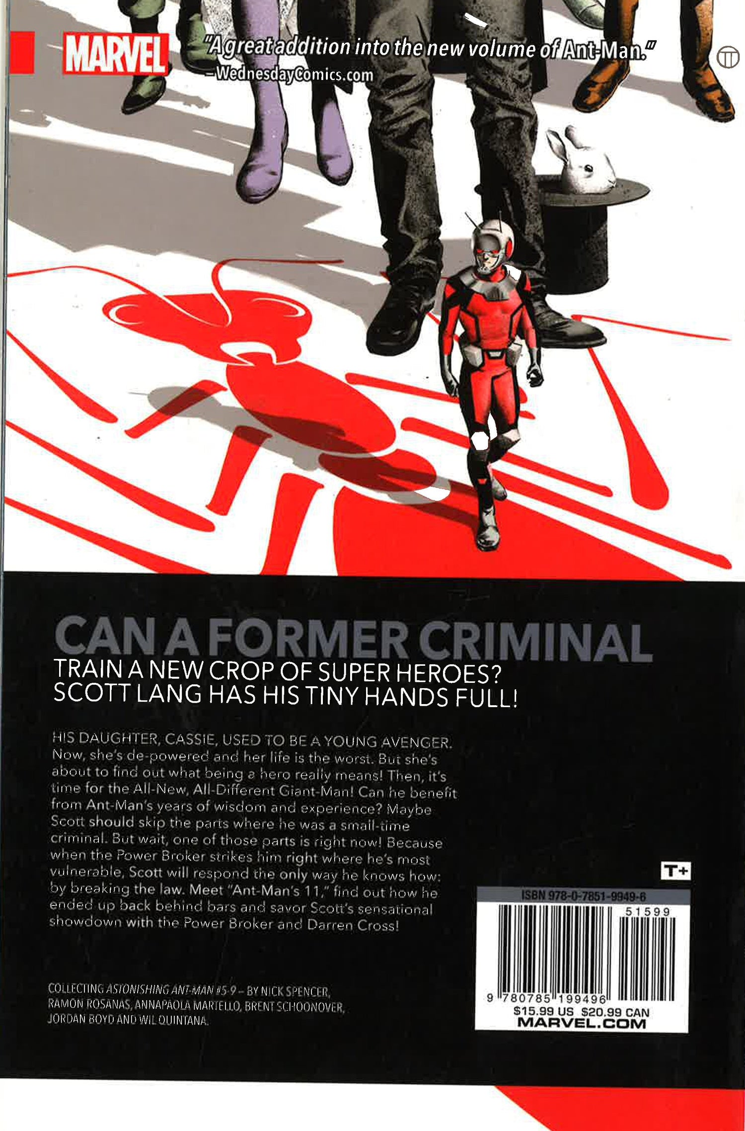 Scott Lang has his tiny hands full, from one former goliath-sized super hero to a brand new one! His daughter Cassie used to be a Young Avenger. Now, she's de-powered and her life is the worst. But she's about to find out what being a hero really means! Then, it's time for the All-New, All-Diff erent Giant-Man! Can he benefit from Ant-Man's years of wisdom and experience? Maybe Scott should skip the parts where he was a small-time criminal. But wait, one of those parts is right now! Because when the Power Broker strikes him right where he's most vulnerable, Ant-Man will respond the only way he knows how: by breaking the law. COLLECTING: THE ASTONISHING ANT-MAN 5-9