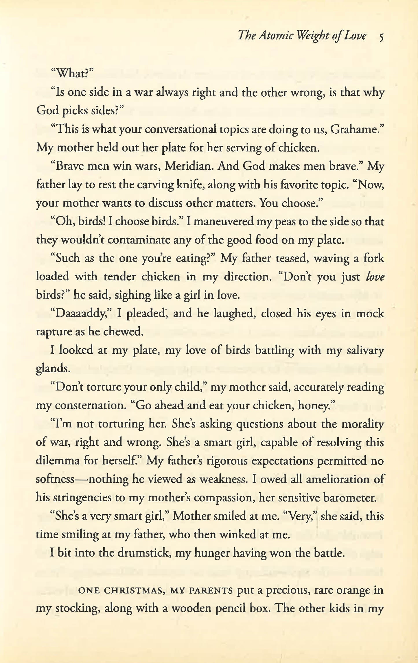 In 1941, spirited and adventurous Meridian Wallace begins her ornithology studies at the University of Chicago. The last thing she expects is to fall in love with a man two decades older: her brilliant physics professor, Alden Whetstone - or for him to be recruited to Los Alamos, New Mexico, to take part in a mysterious wartime project.