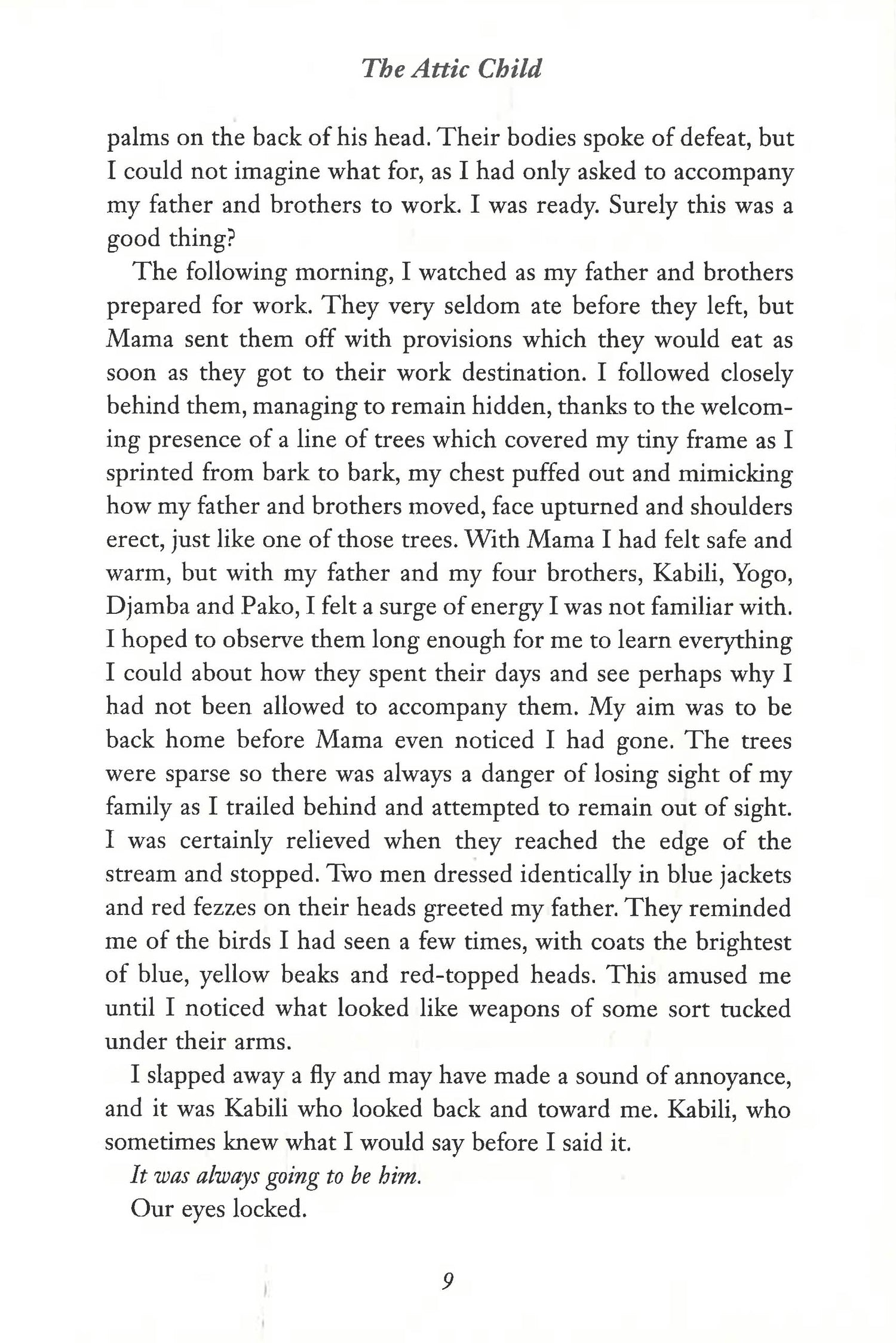 Early 1900s London: Taken from his homeland, twelve-year-old Celestine spends most of the time locked away in the attic of a large house by the sea. The only time Celestine isn't bound by confines of the small space is when he is acting as an unpaid servant to English explorer Sir Richard Babbington, As the years pass, he desperately clings on to memories of his family in Africa, even as he struggles to remember his mother's face, and sometimes his real name . . .
