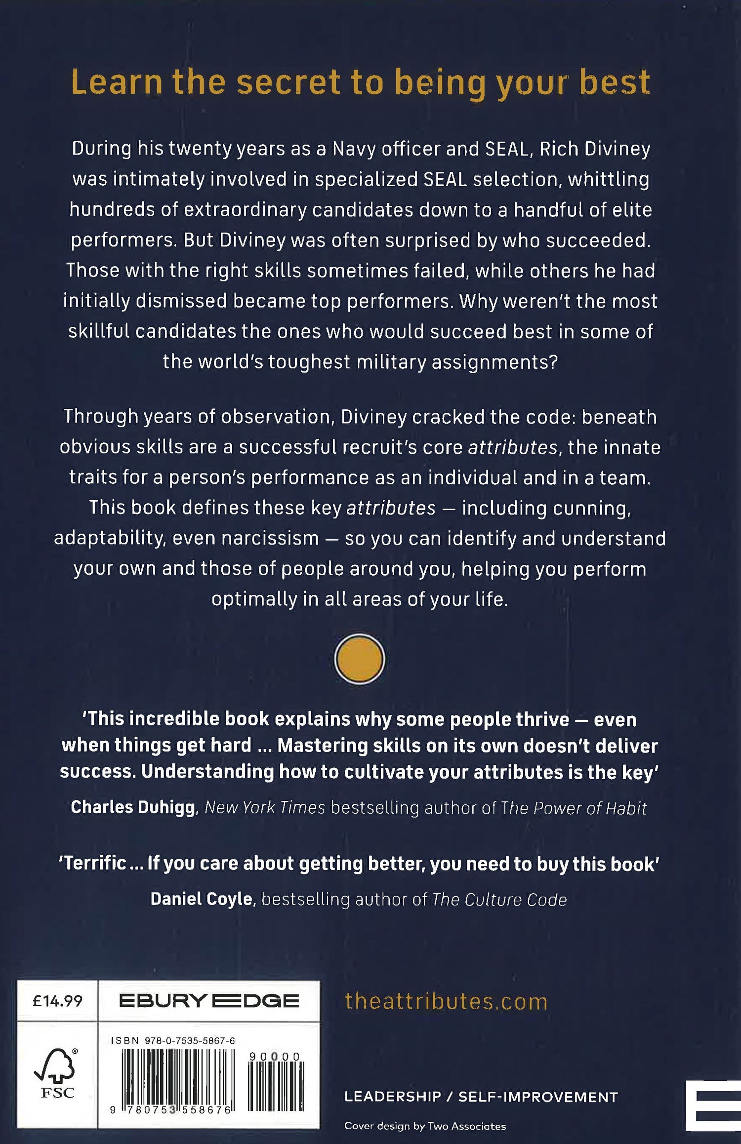 So much of what I know about trust I learned from Rich Diviney'- Simon Sinek'Incredible... explains why some people thrive - even when things get hard' - Charles Duhigg'If you care about getting better, you need to buy this book' Daniel CoyleLearn the secret to being your bestDuring his twenty years as a Navy officer and SEAL, Rich Diviney was intimately involved in specialized SEAL selection, whittling hundreds of extraordinary candidates down to a handful of elite performers. But Diviney was often surprised by who succeeded. Those with the right skills sometimes failed, while others he had initially dismissed became top performers. Why weren't the most skillful candidates the ones who would succeed best in some of the world's toughest military assignments? Through years of observation, Diviney cracked the code: beneath obvious skills are a successful recruit's core attributes, the innate traits for a person's performance as an individual and in a team. This book defines these key attributes - including cunning, adaptability, even narcissism - so you can identify and understand your own and those of people around you, helping you perform optimally in all areas of your life.