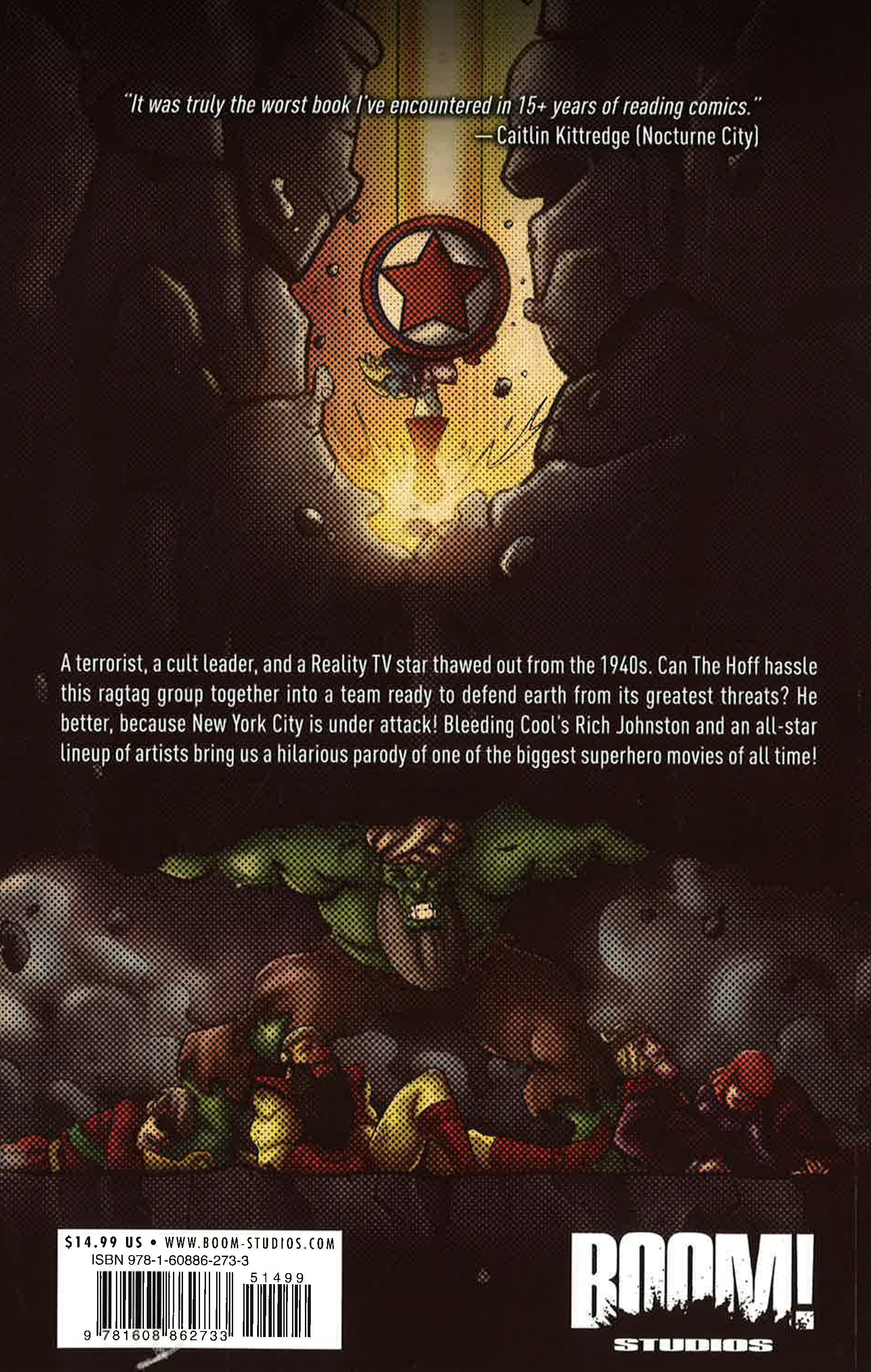 In THE AVENGEFULS saga, BLEEDING COOL's Rich Johnston takes us on a raucous ride through politics, fanaticism and the healing power of Hollywood. Avengefuls Assemble! A fundamentalist Islamic terrorist codenamed The Iron Muslim, the world's leading for-profit deity ScienTHORlogy, and Captain American Idol, a reality TV star thawed out from the 1940s. Can The Hoff assemble this rag-tag group together into a team ready to face Earth's greatest threats? Well, he better, because that's why we're making this comic!