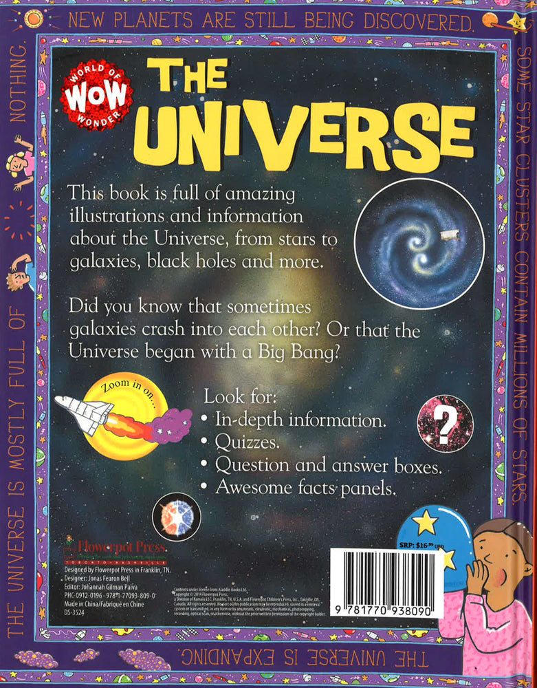 Kids are sure to say "Wow! That's awesome!" while reading these fun, informative fact books about some of the world's most intriguing and mysterious places. Kids will learn about gravity, stars, and the planets above. Parents and educators will love how engaged students are in these books, while kids will be too involved in the amazing facts and photographs to realize they are learning! With a cover designed to grab a child's attention (including foil, spot UV, and embossing), and an immediately engaging interior filled with varying text lengths and density, diverse illustrations, dynamic layouts, and the most current information laid out in a captivating format, young readers will come back to this book again and again, building their science knowledge base as well as vocabulary.